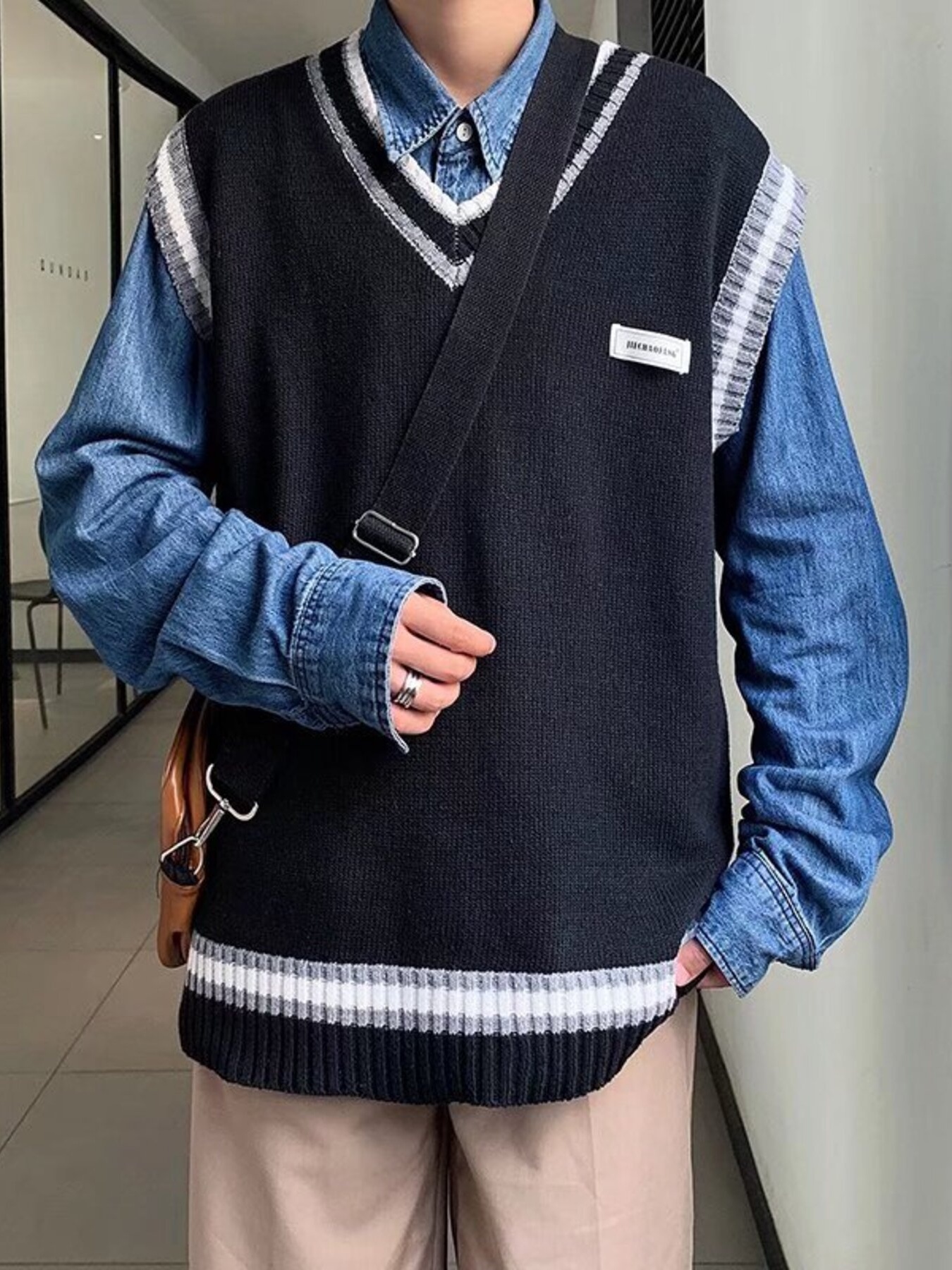 Men's Contrast Trim Sweater Vest