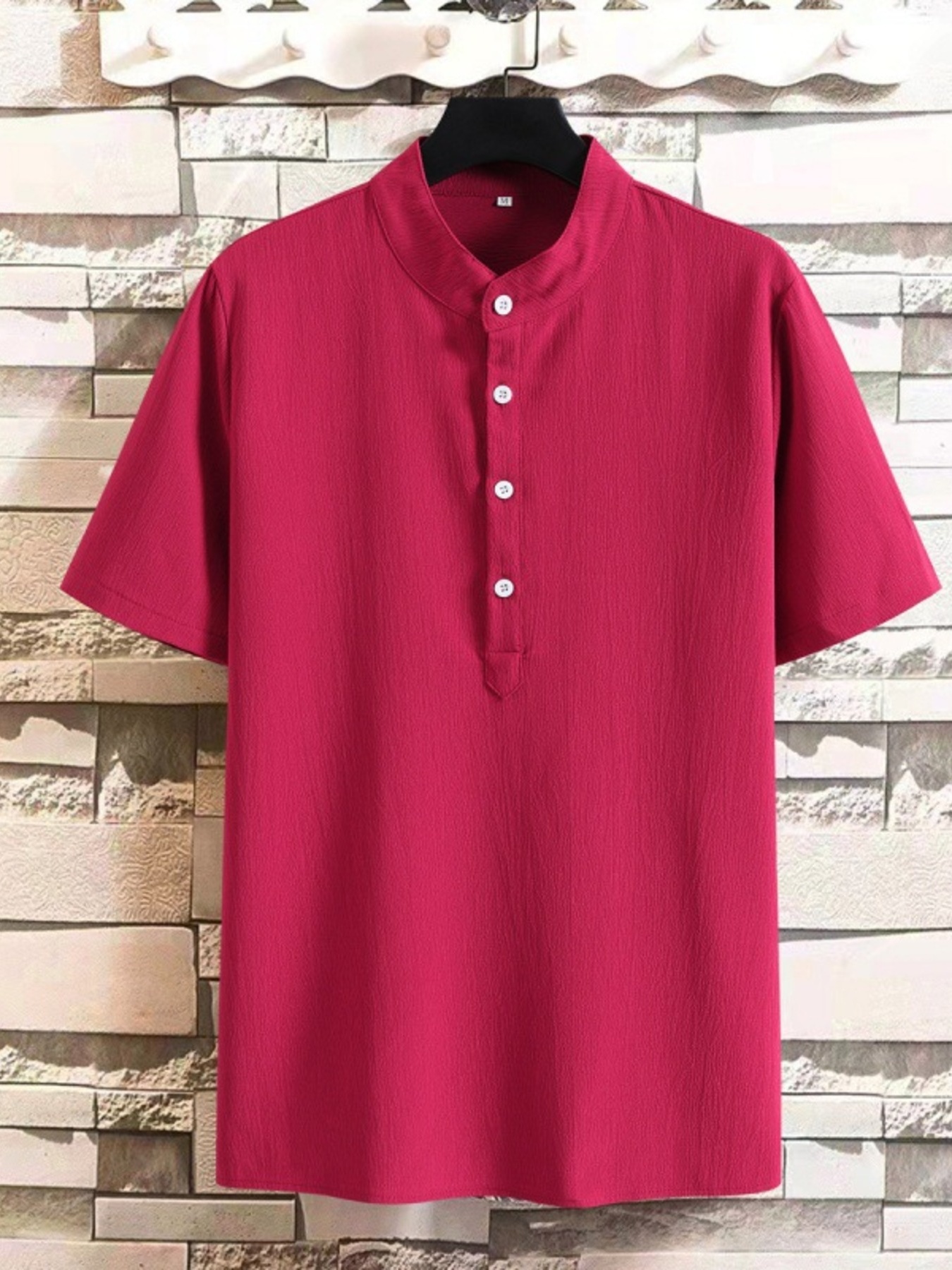 Men's Plus Size Button Detail Short Sleeve Blouse