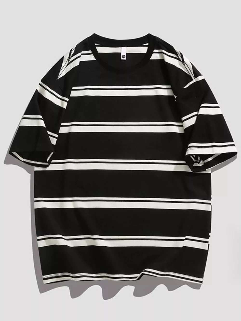 Men's Plus Size Striped Round Neck Oversized T-Shirt