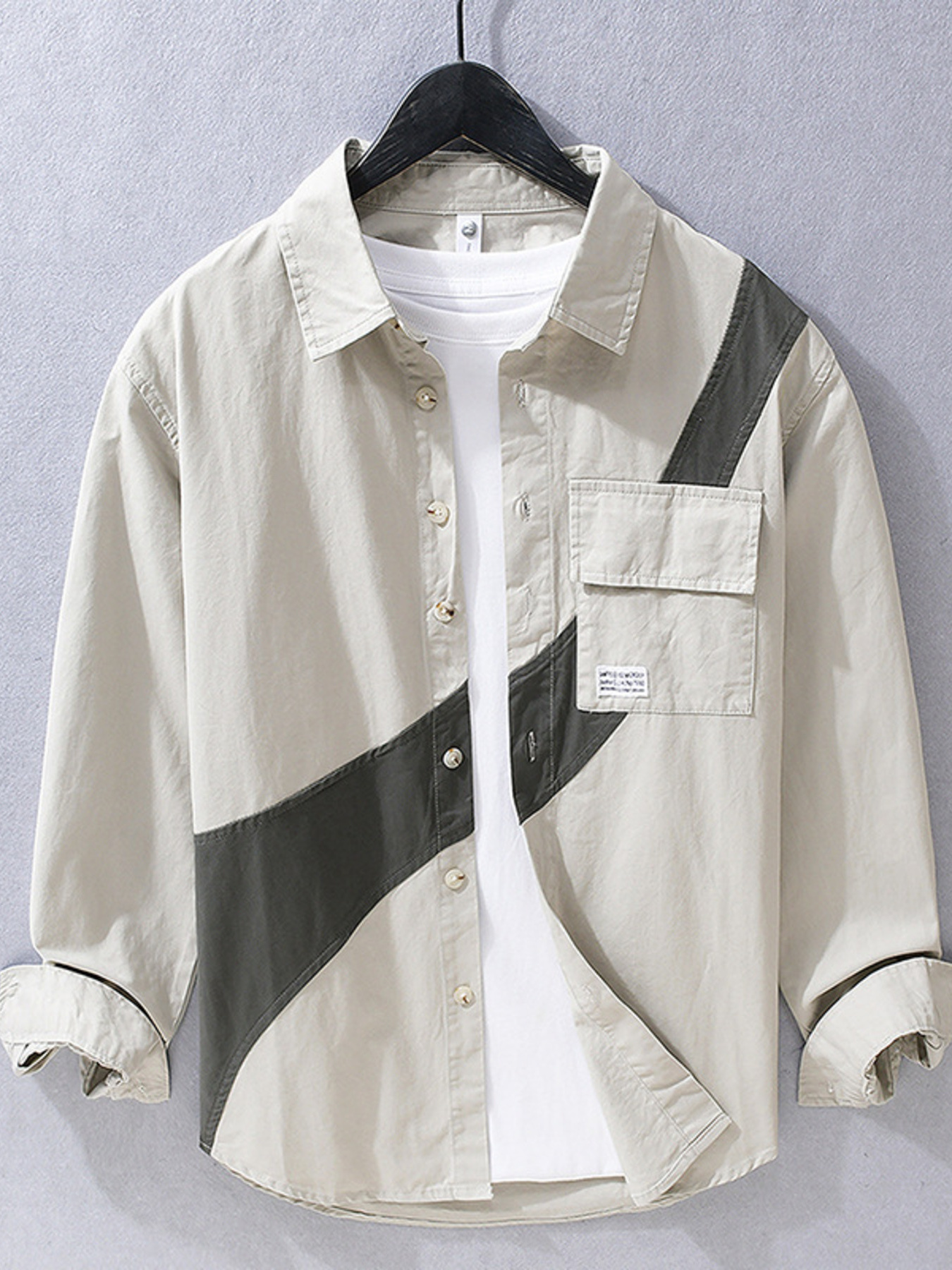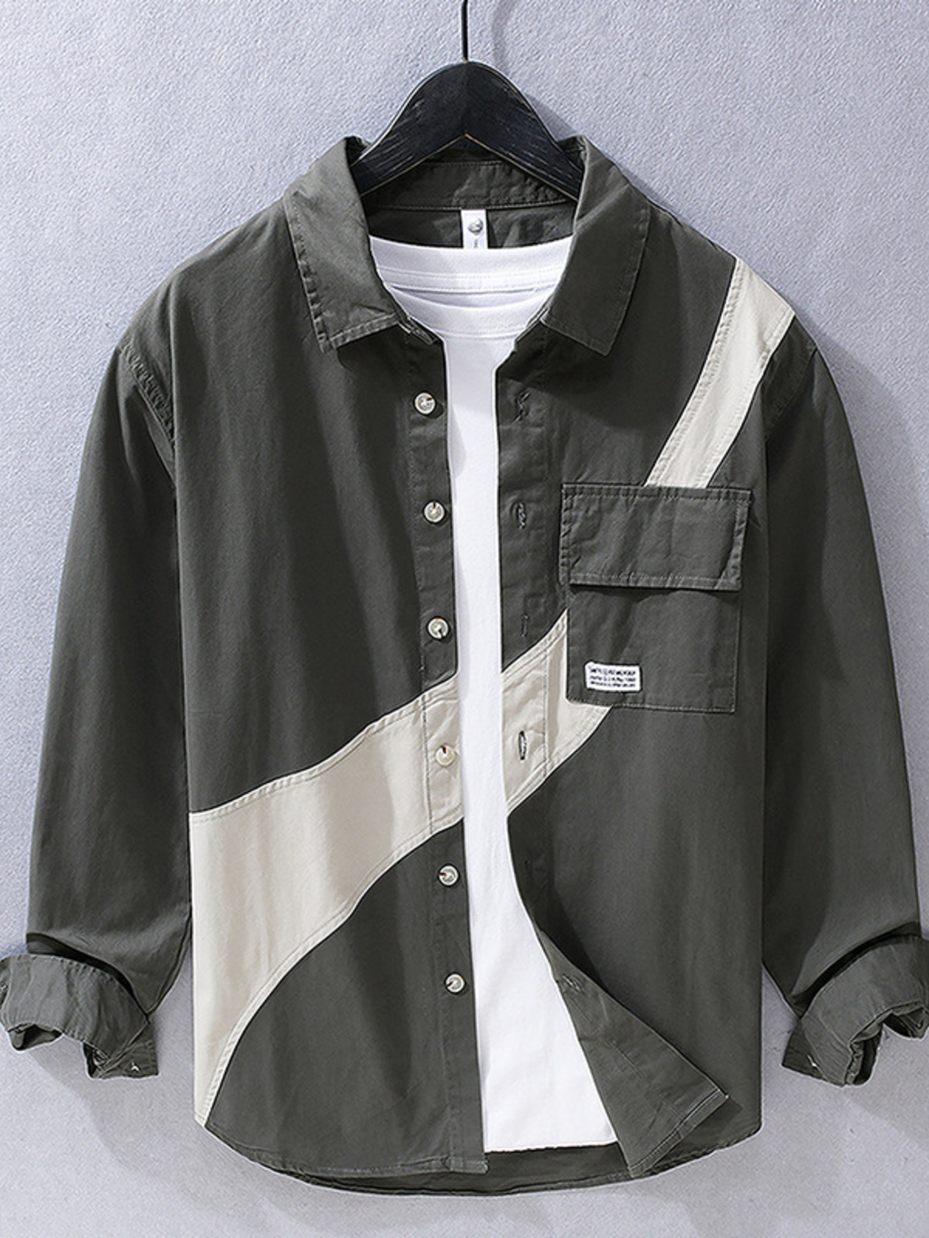 Men's Plus Size Color Block Casual Long Sleeve Shirt
