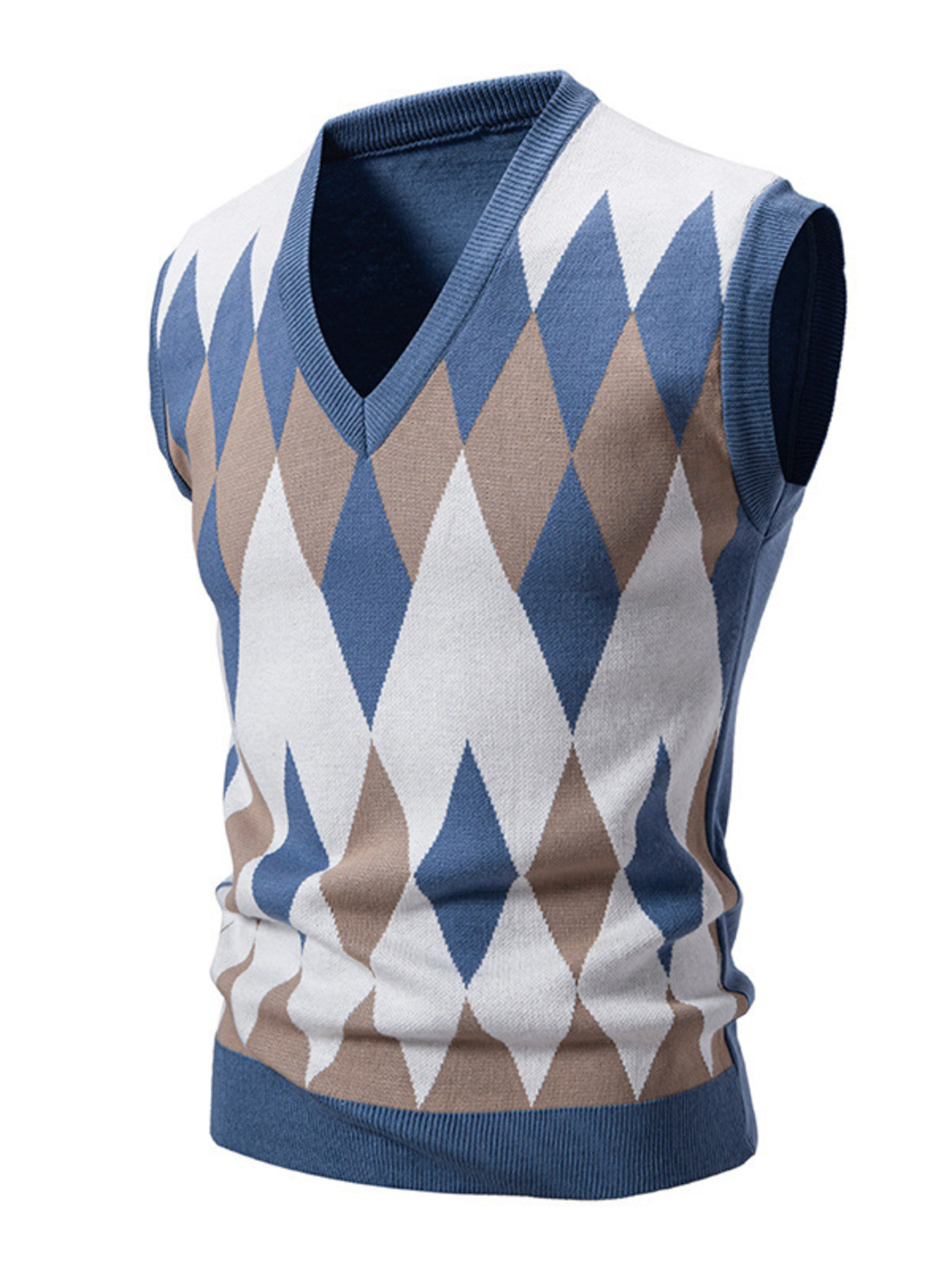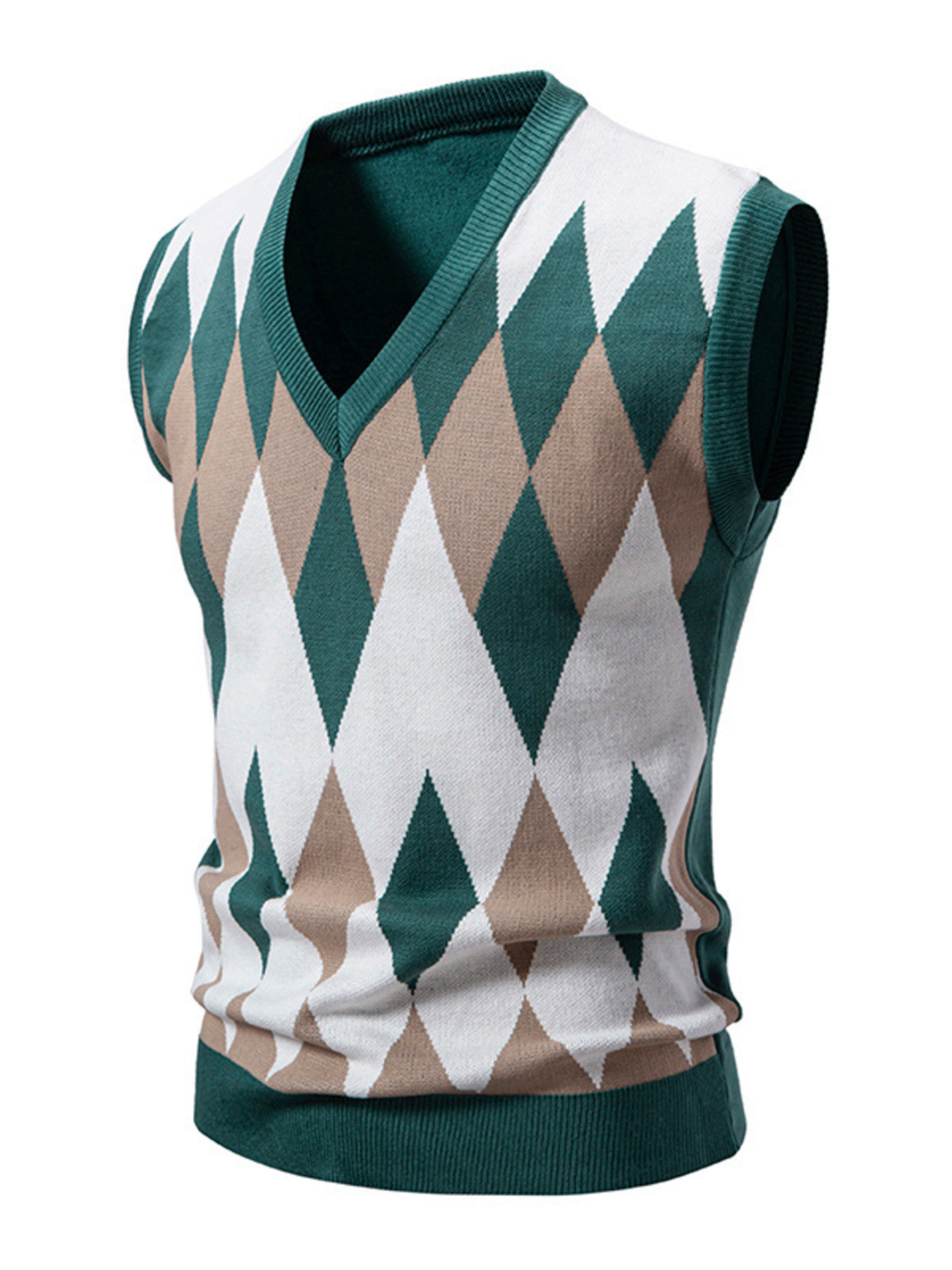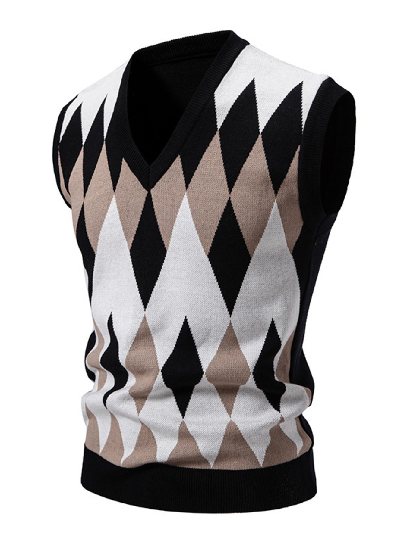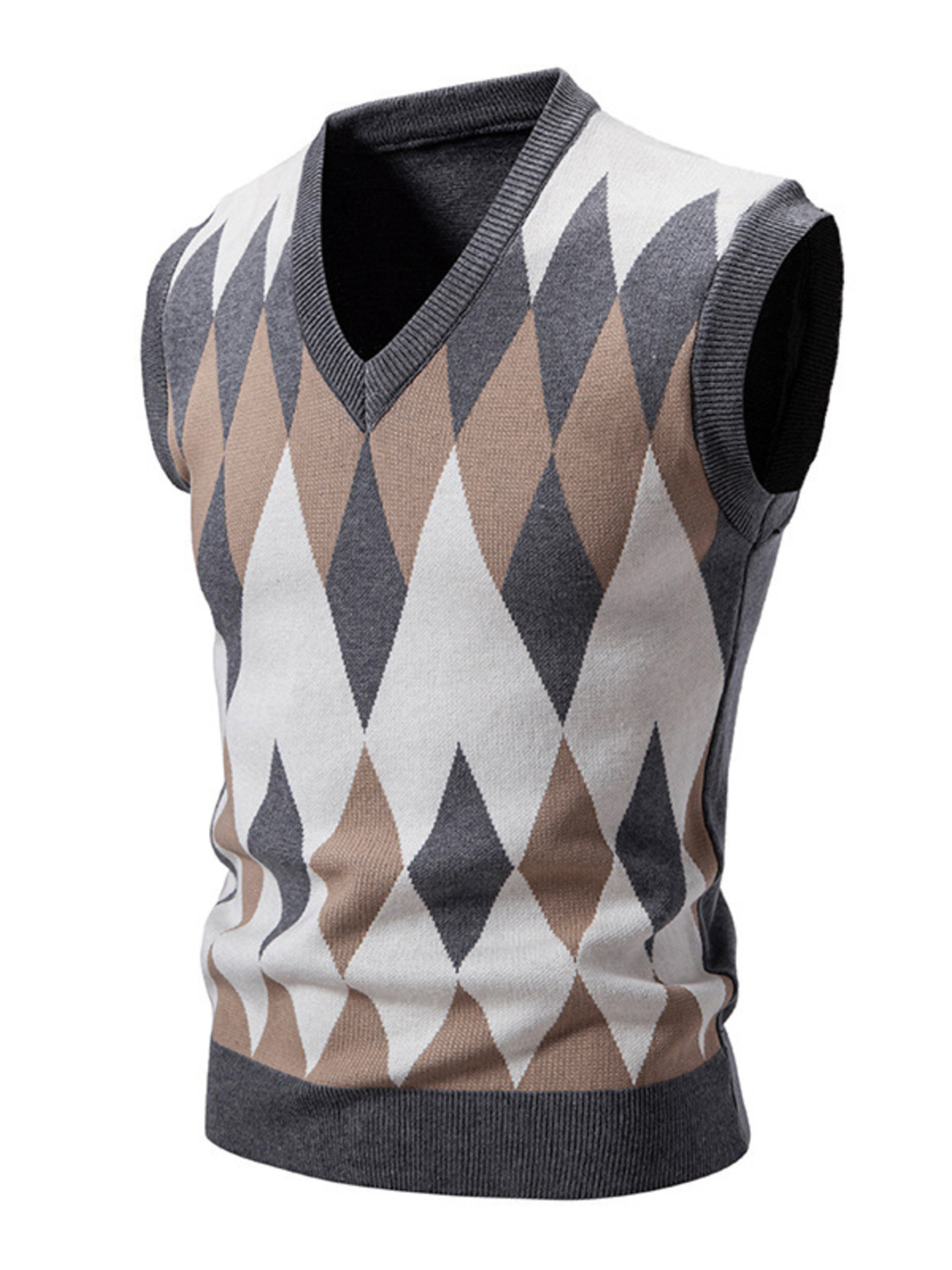 Men's Plus Size Diamond Pattern V-Neck Sweater Vest
