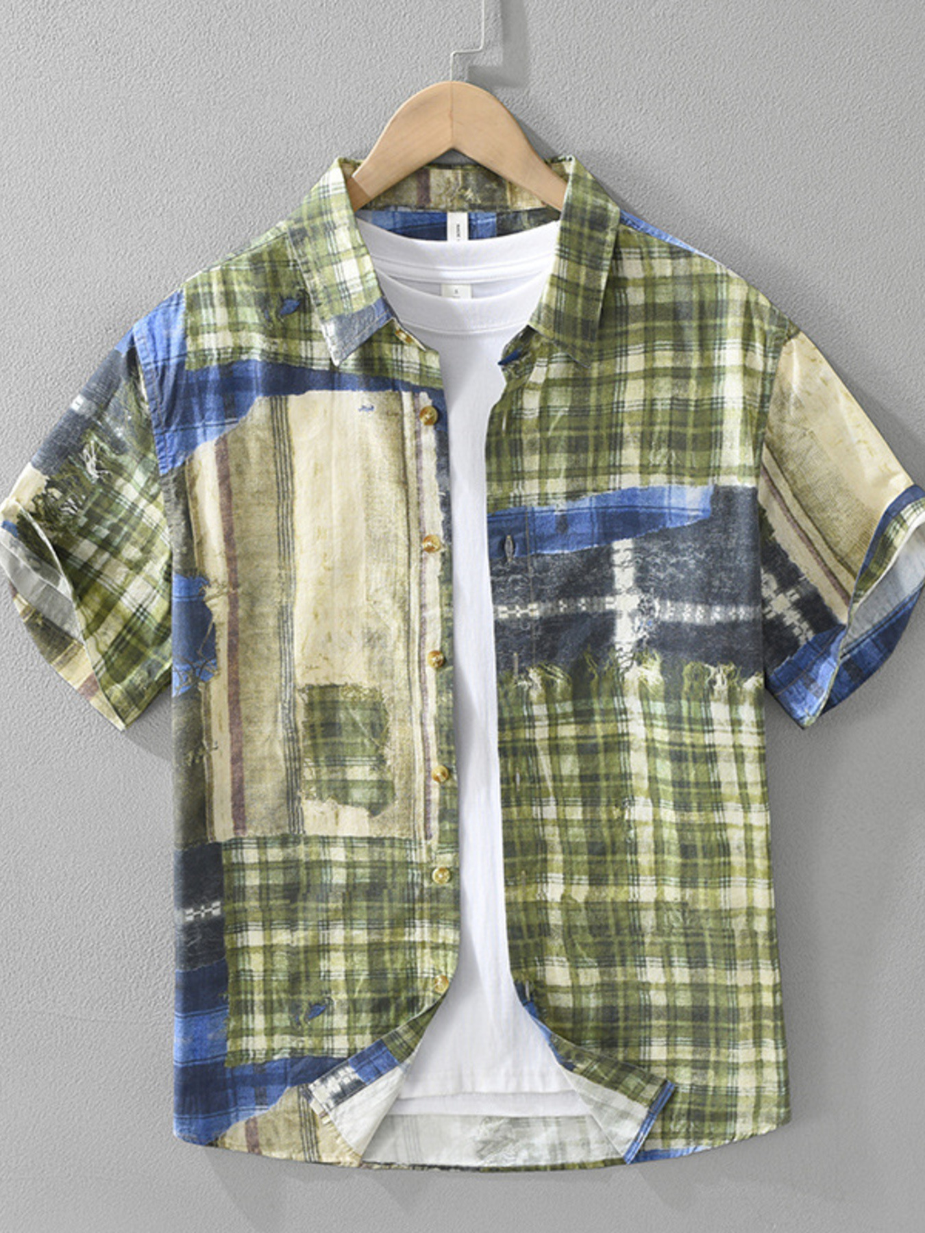 Men's Plus Size Checkered Pattern Short Sleeve Casual Shirt