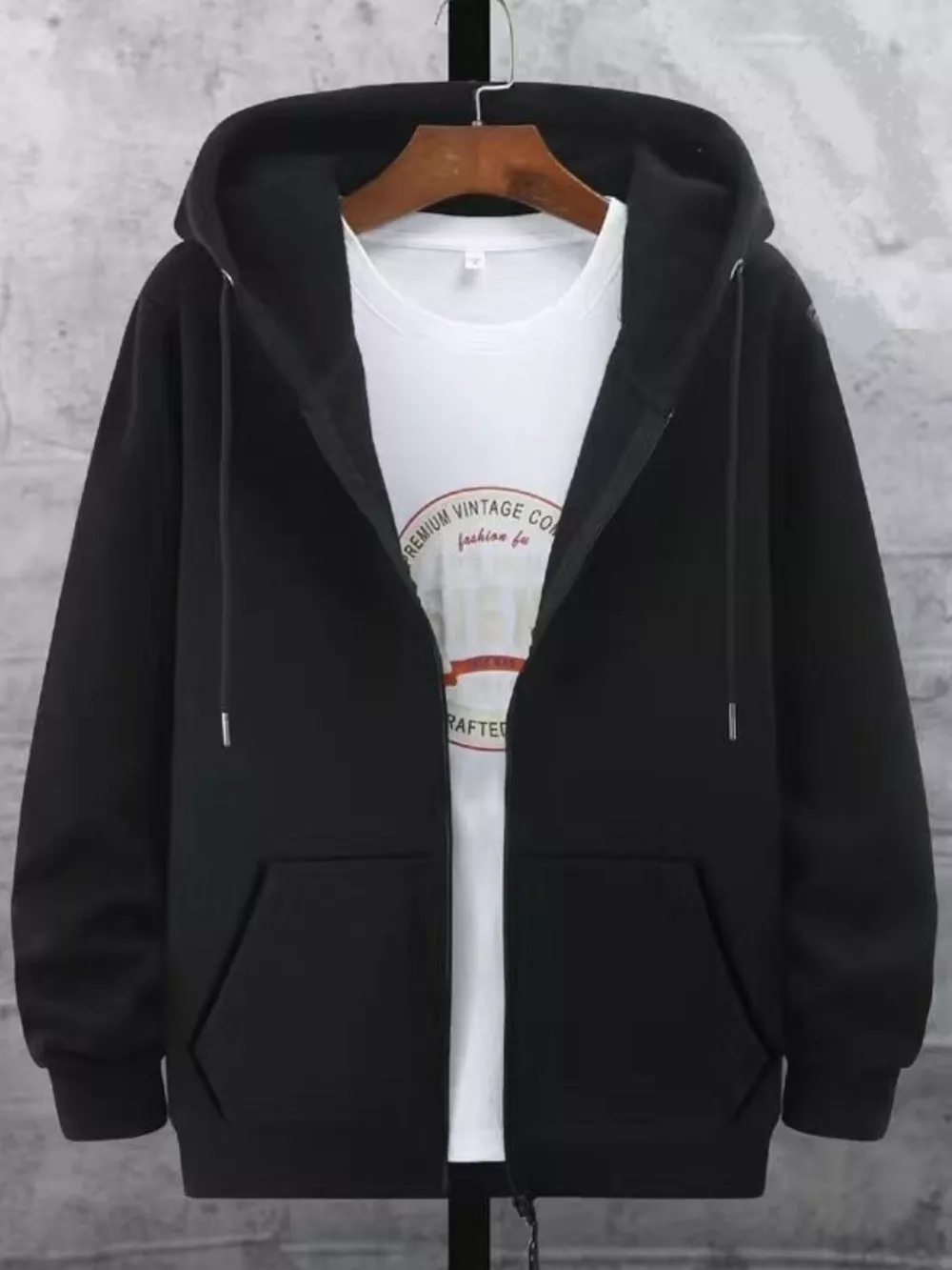 Men's Plus Size Casual Solid Color Zip-Up Hoodie
