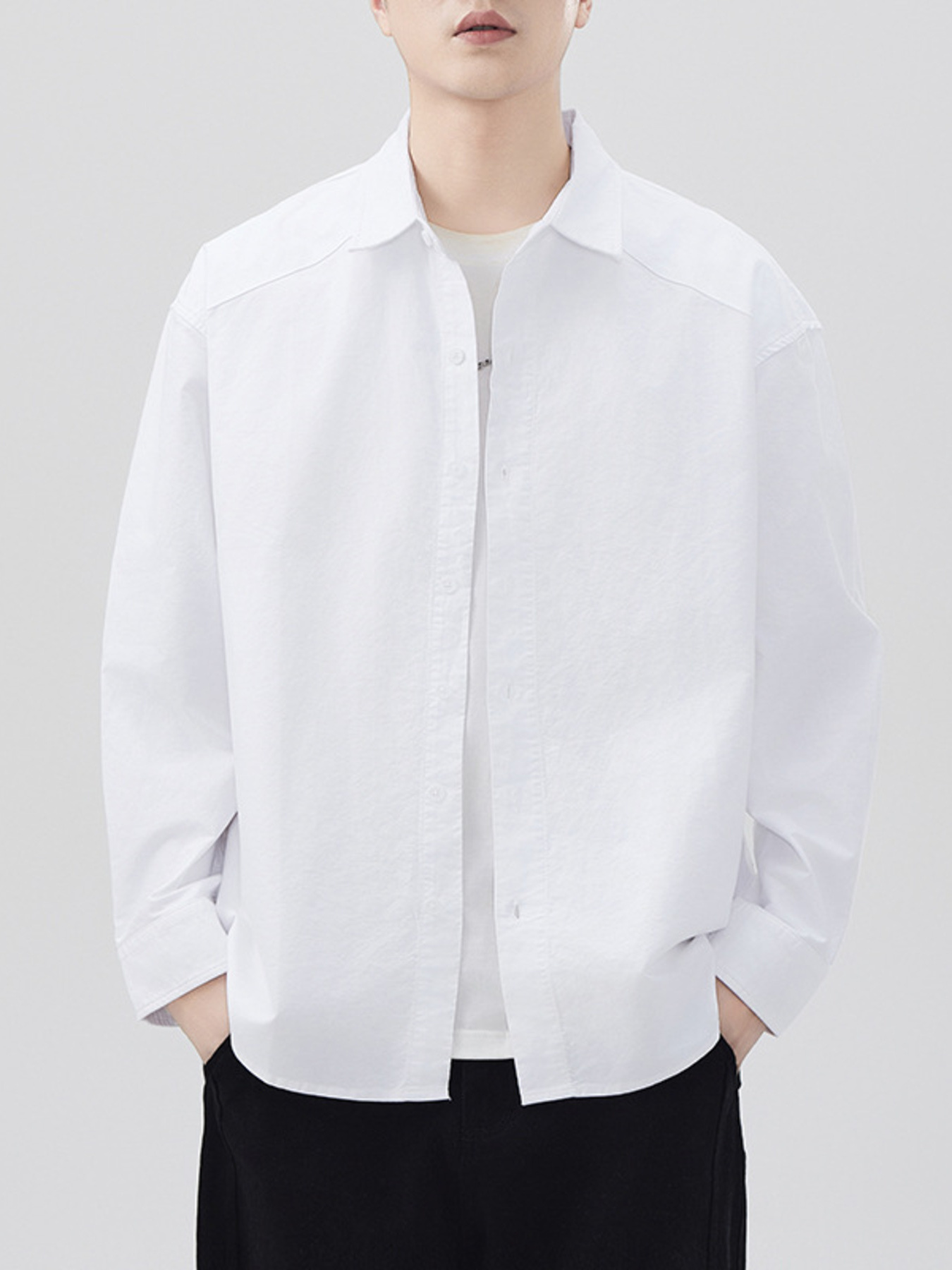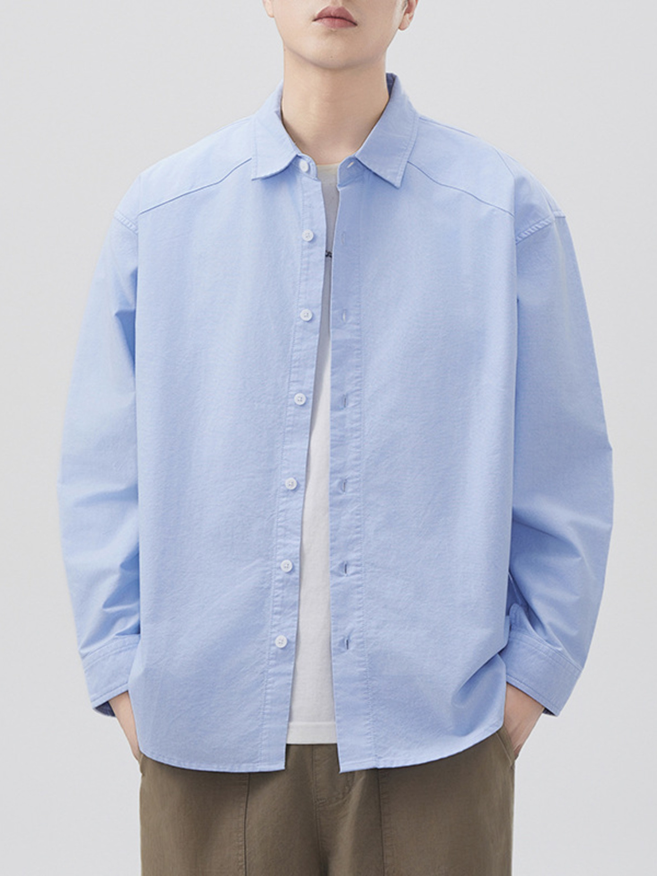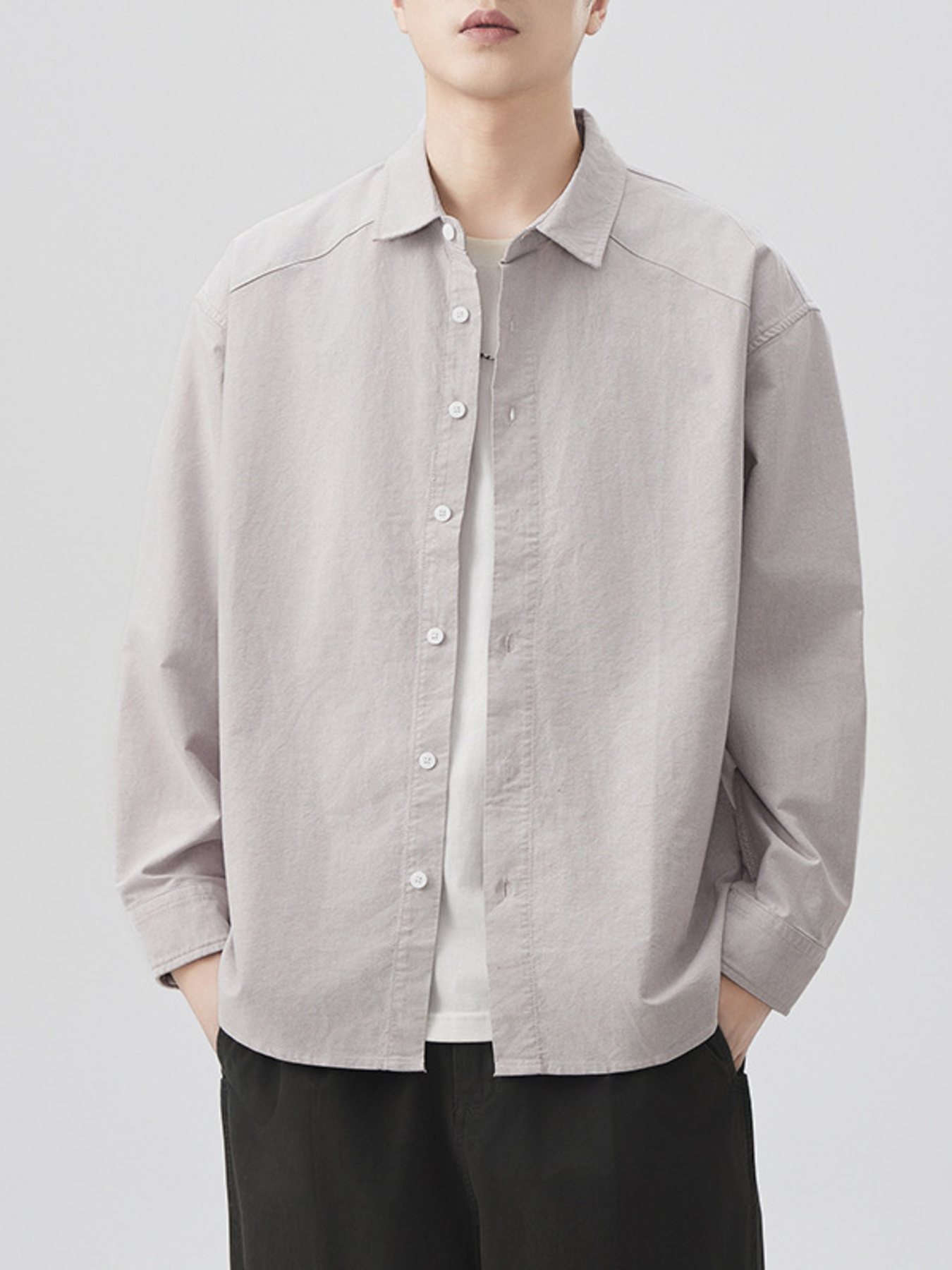 Men's Plus Size Casual Solid Color Long Sleeve Shirt