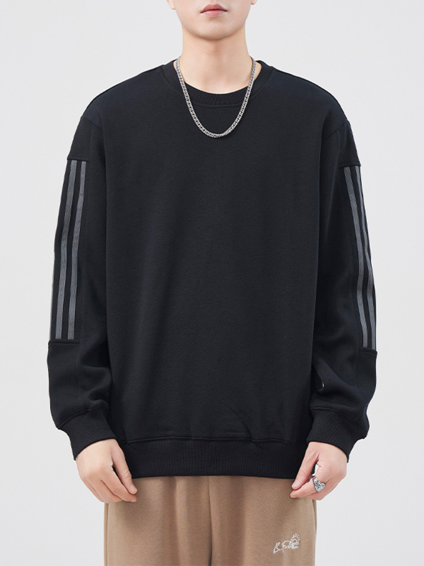 Men's Plus Size Casual Striped Sleeve Sweatshirt