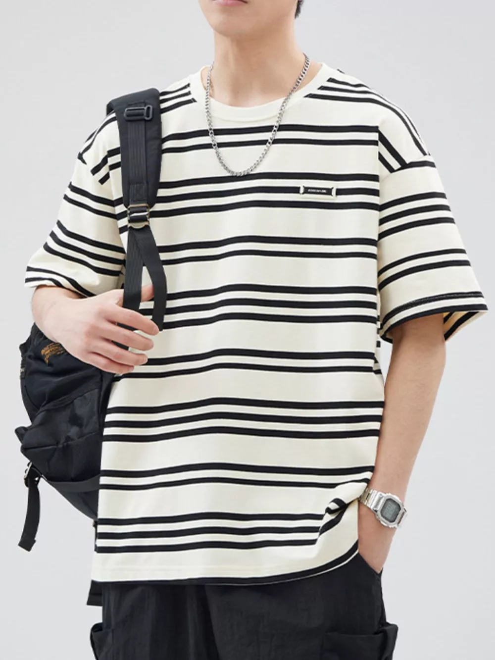 Men's Plus Size Striped Relaxed Fit T-Shirt