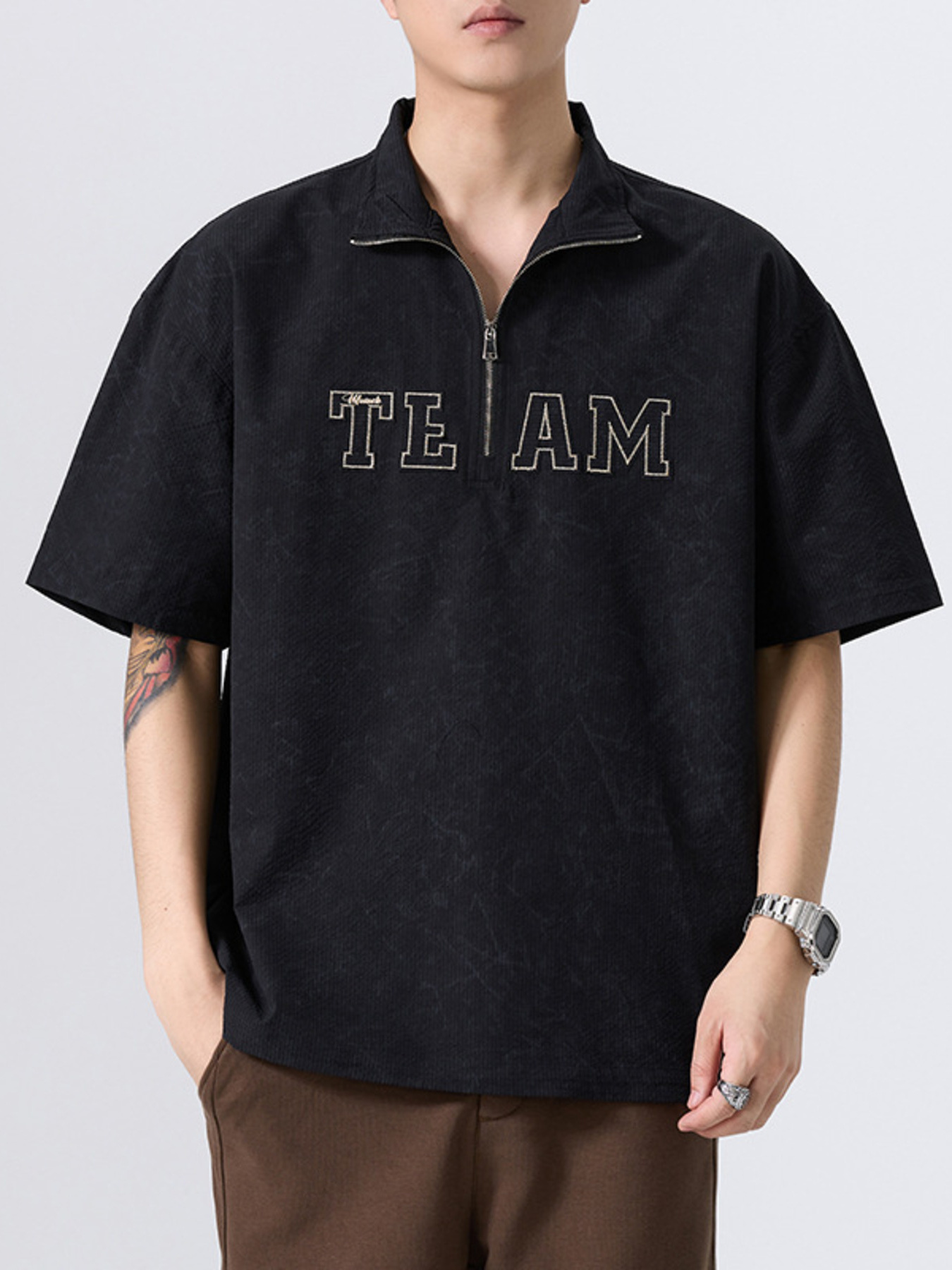 Men's Plus Size Quarter Zip Short Sleeve Polo