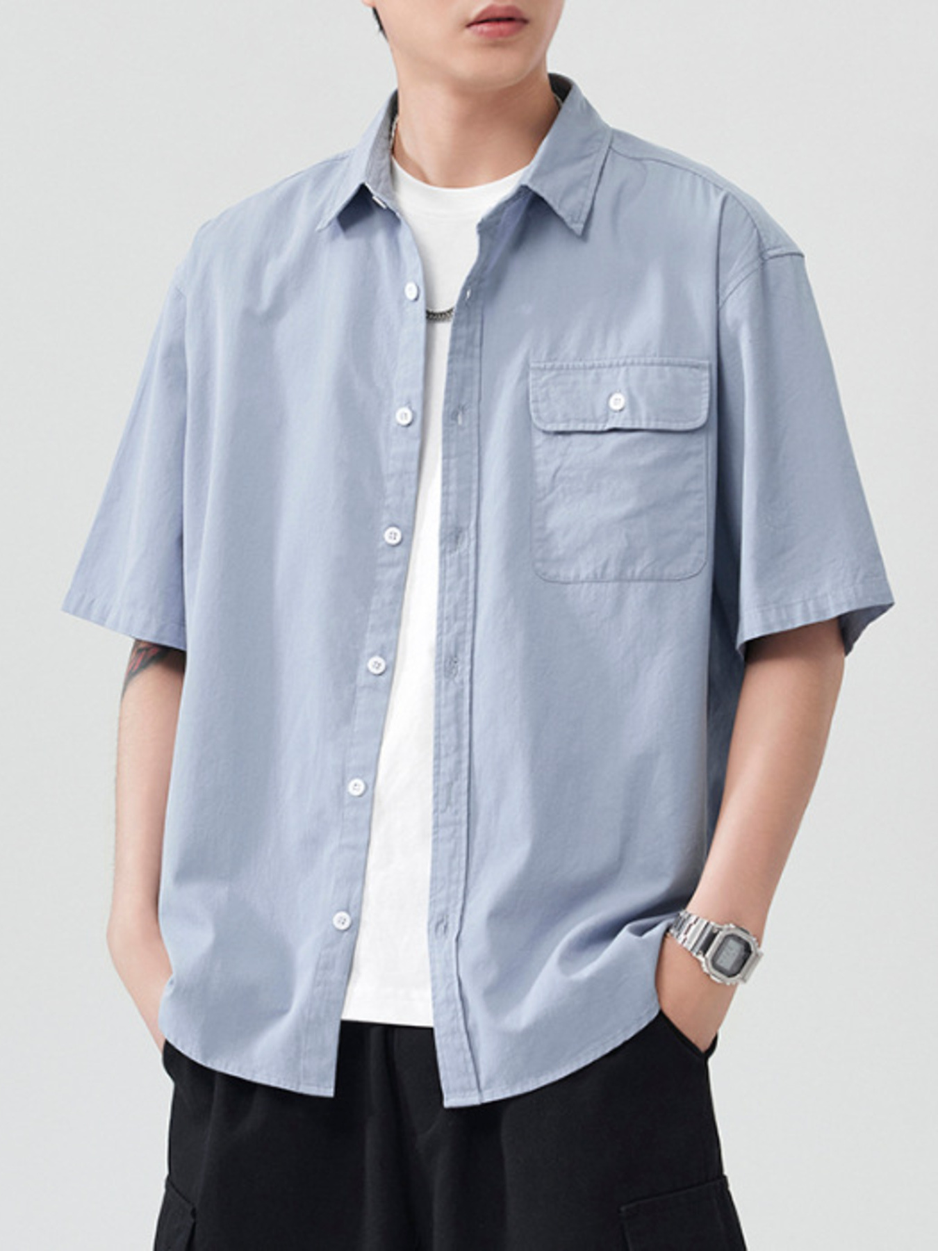 Men's Plus Size Button Up Short Sleeve Shirt
