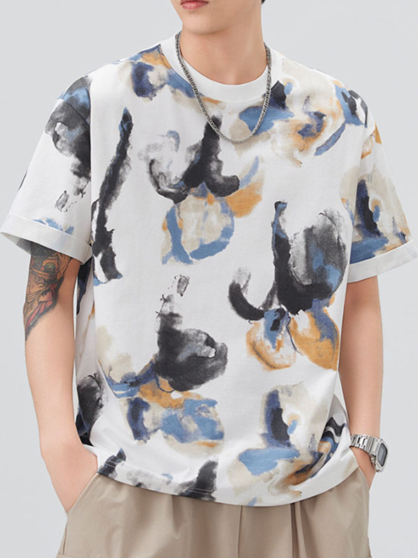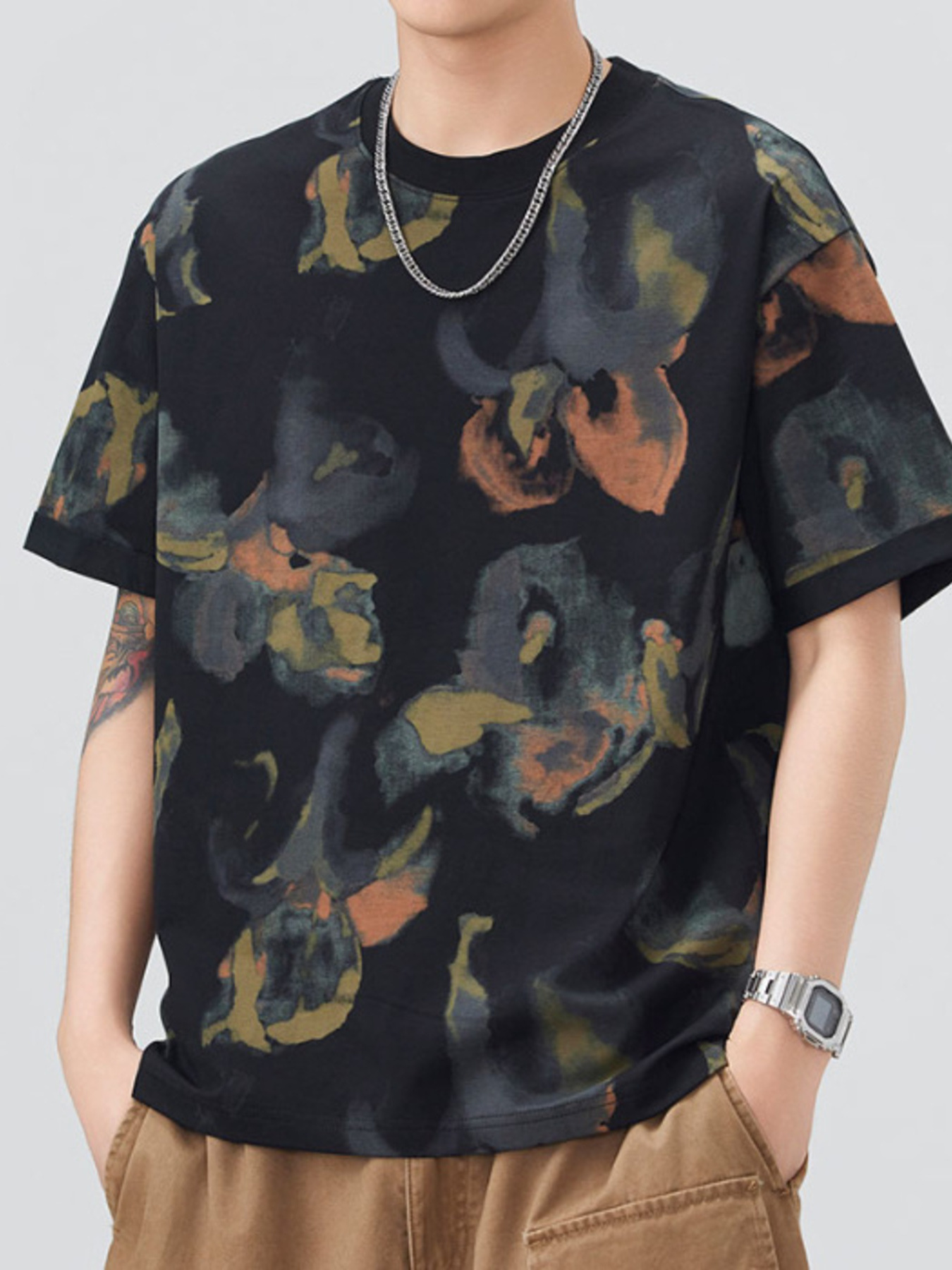 Men's Full Size Arabic Letter Oversized T-Shirt Plus Size
