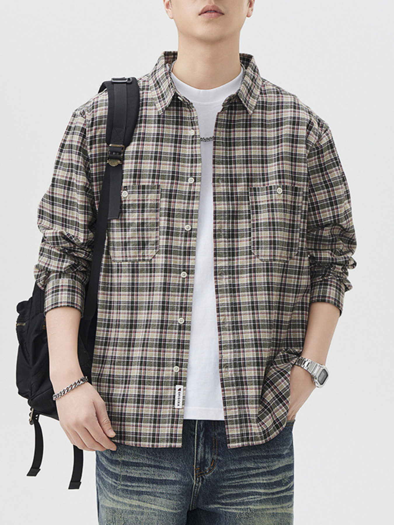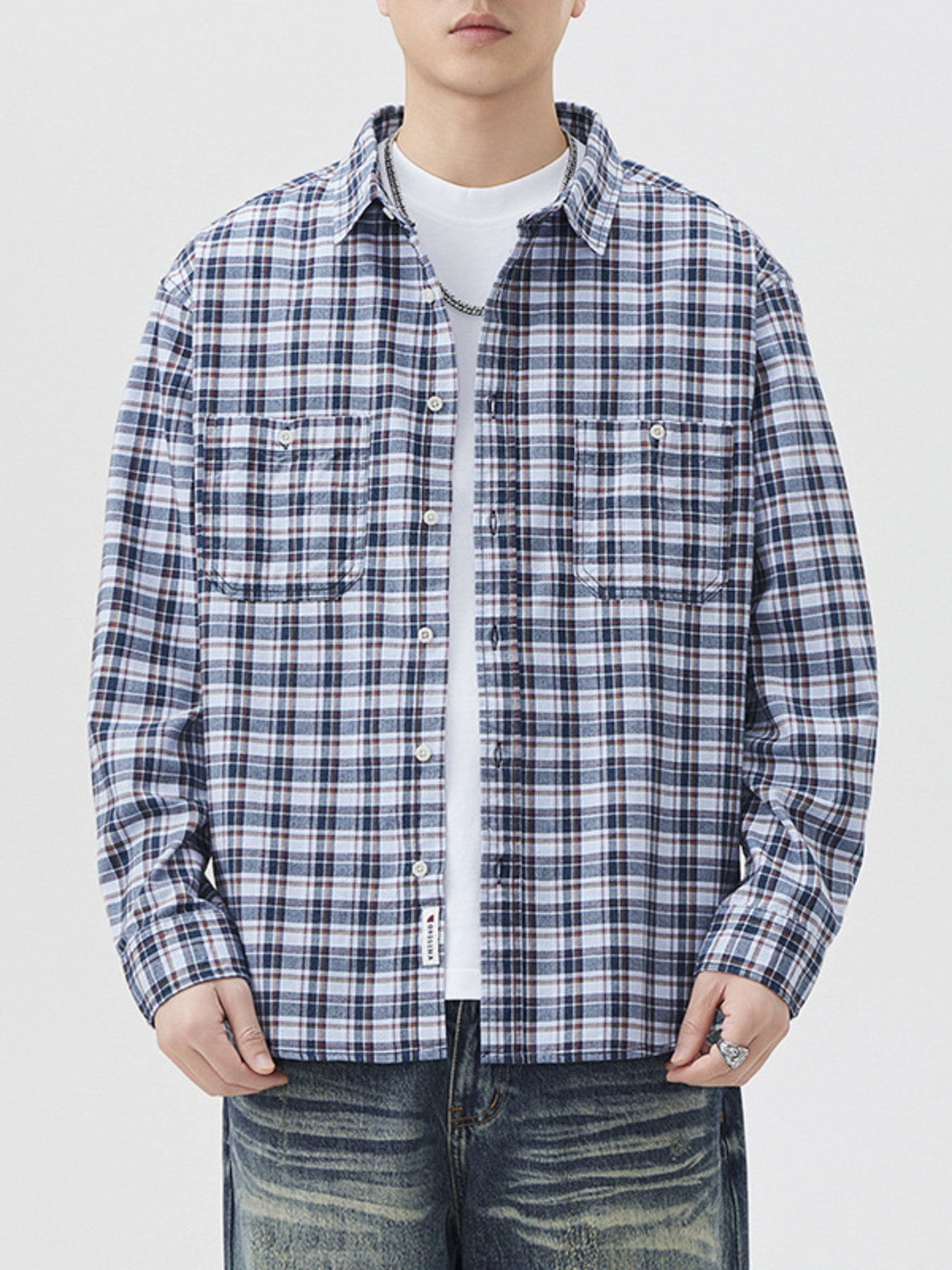 Men's Plus Size Plaid Button Up Long Sleeve Shirt