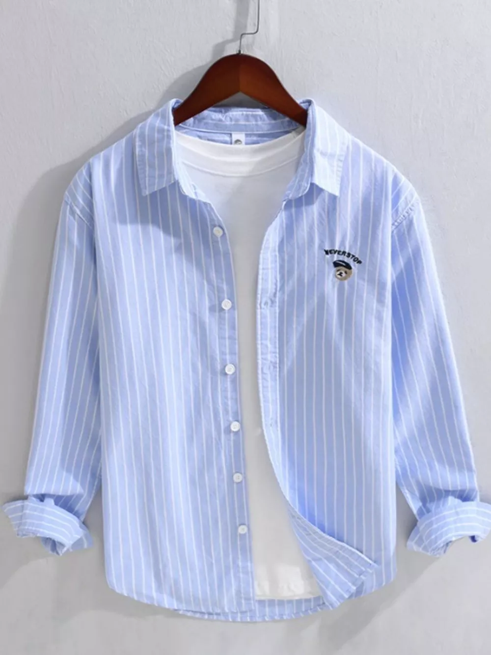 Men's Plus Size Striped Button Up Long Sleeve Shirt