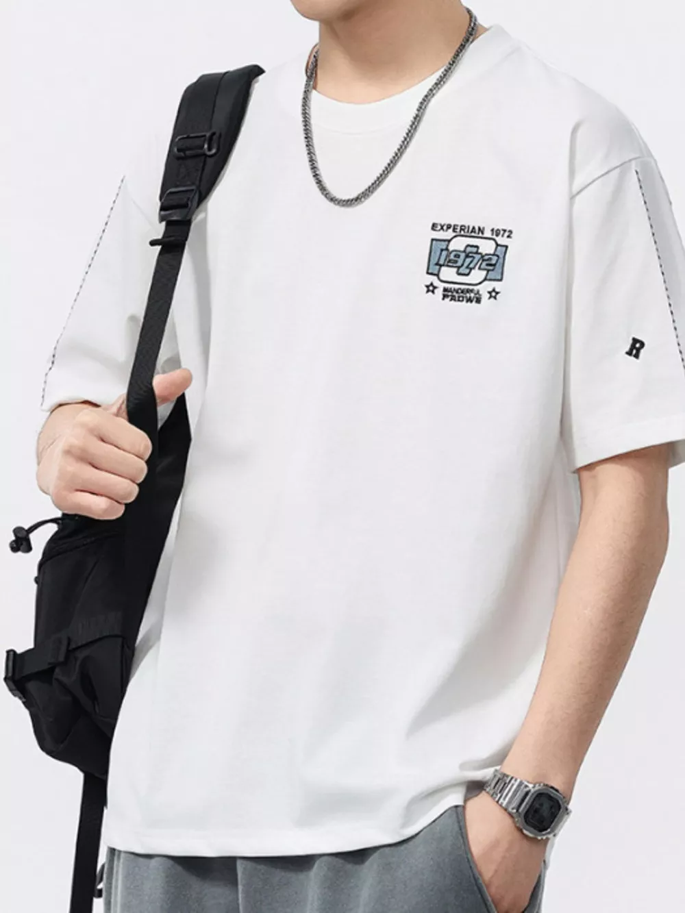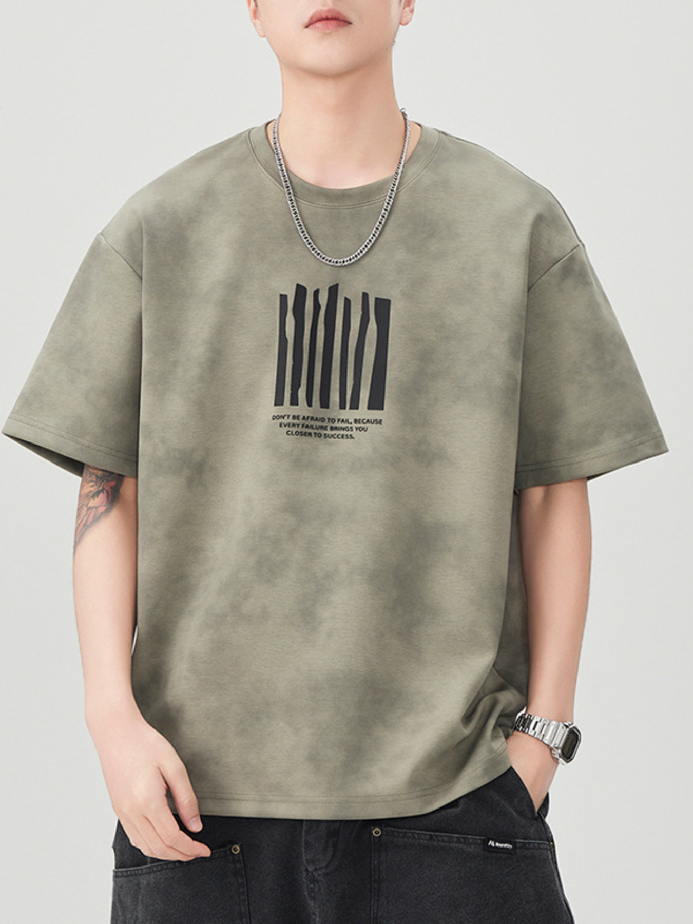 Men's Letter Round Neck Half Sleeve T-Shirt