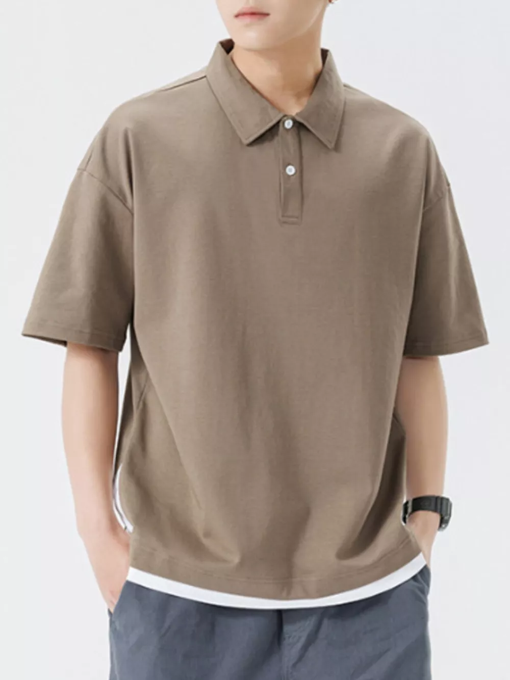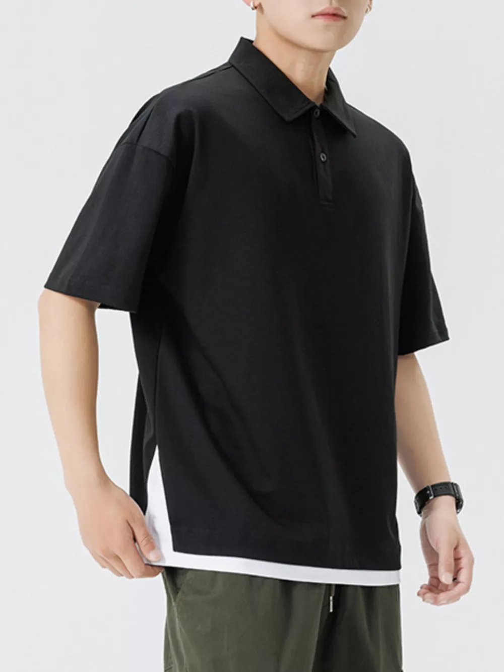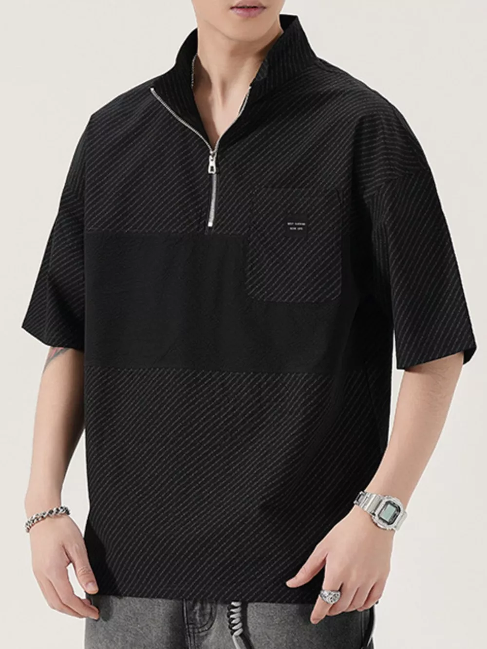 Men's Full Size Half-Zip Textured Oversized T-Shirt Plus Size