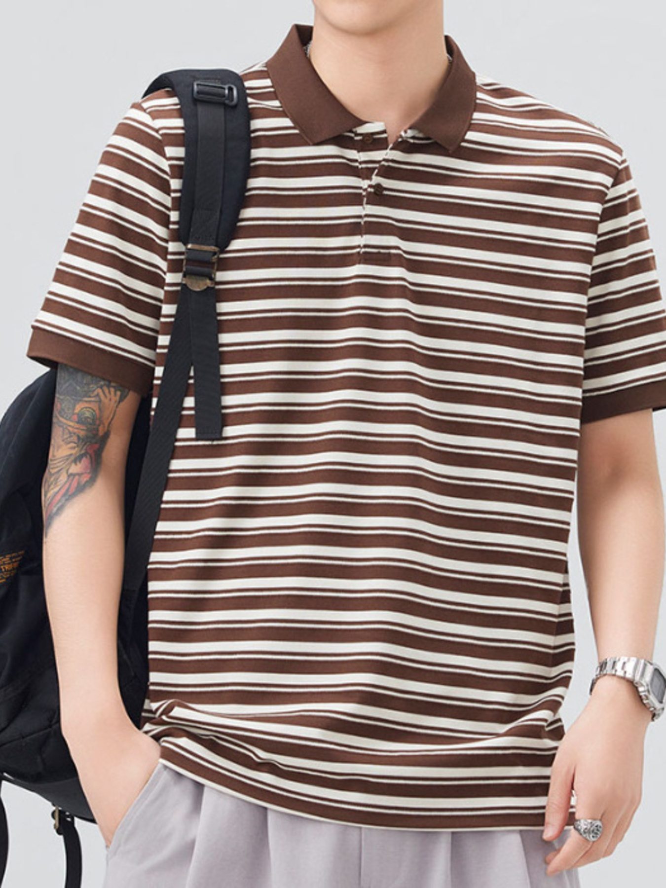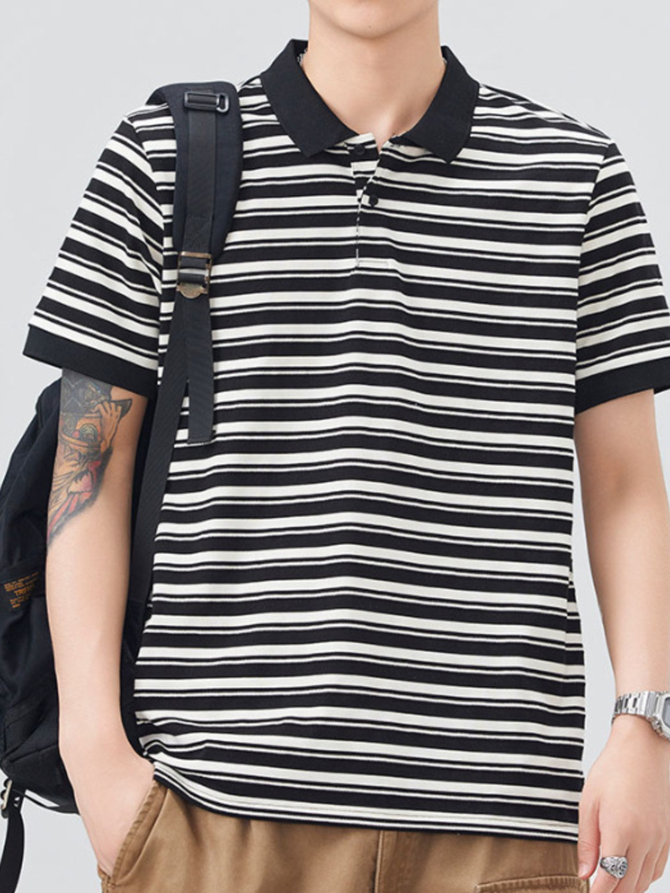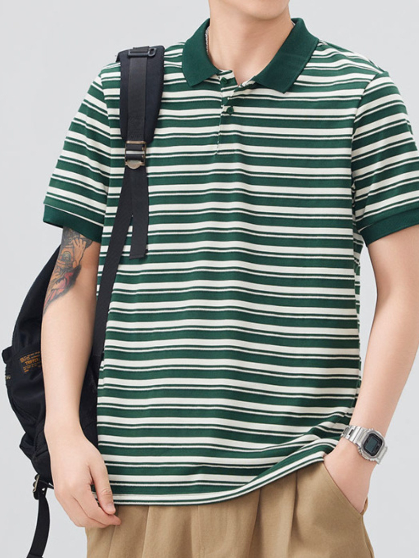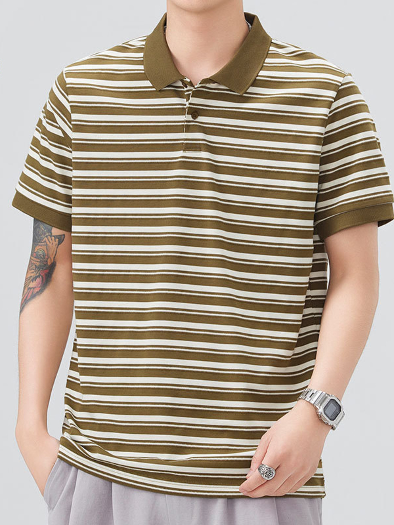 Men's Plus Size Striped Button Detail Short Sleeve Polo