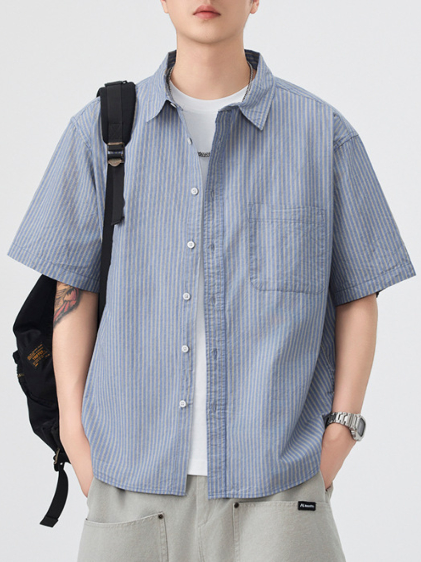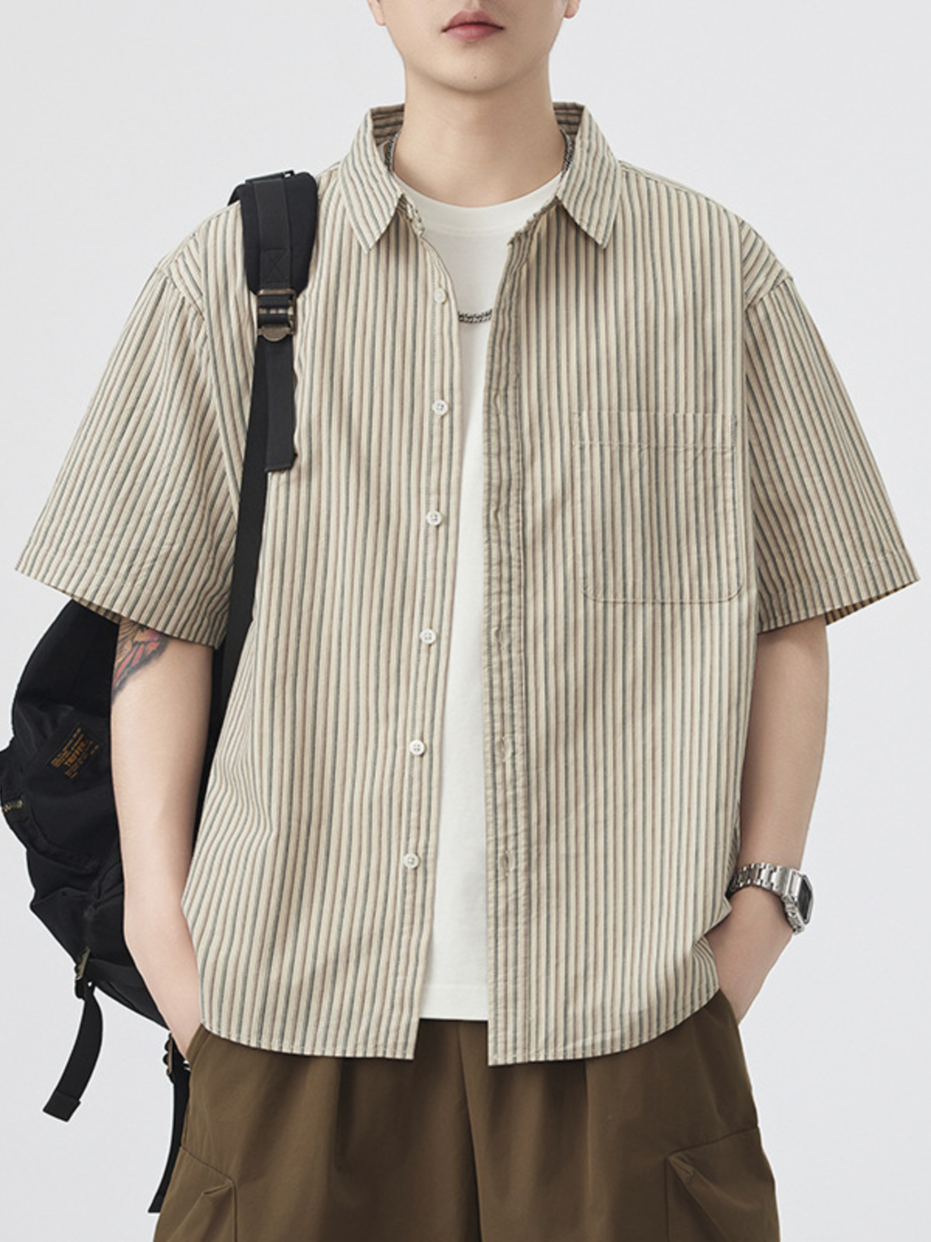 Men's Plus Size Striped Button Up Short Sleeve Shirt