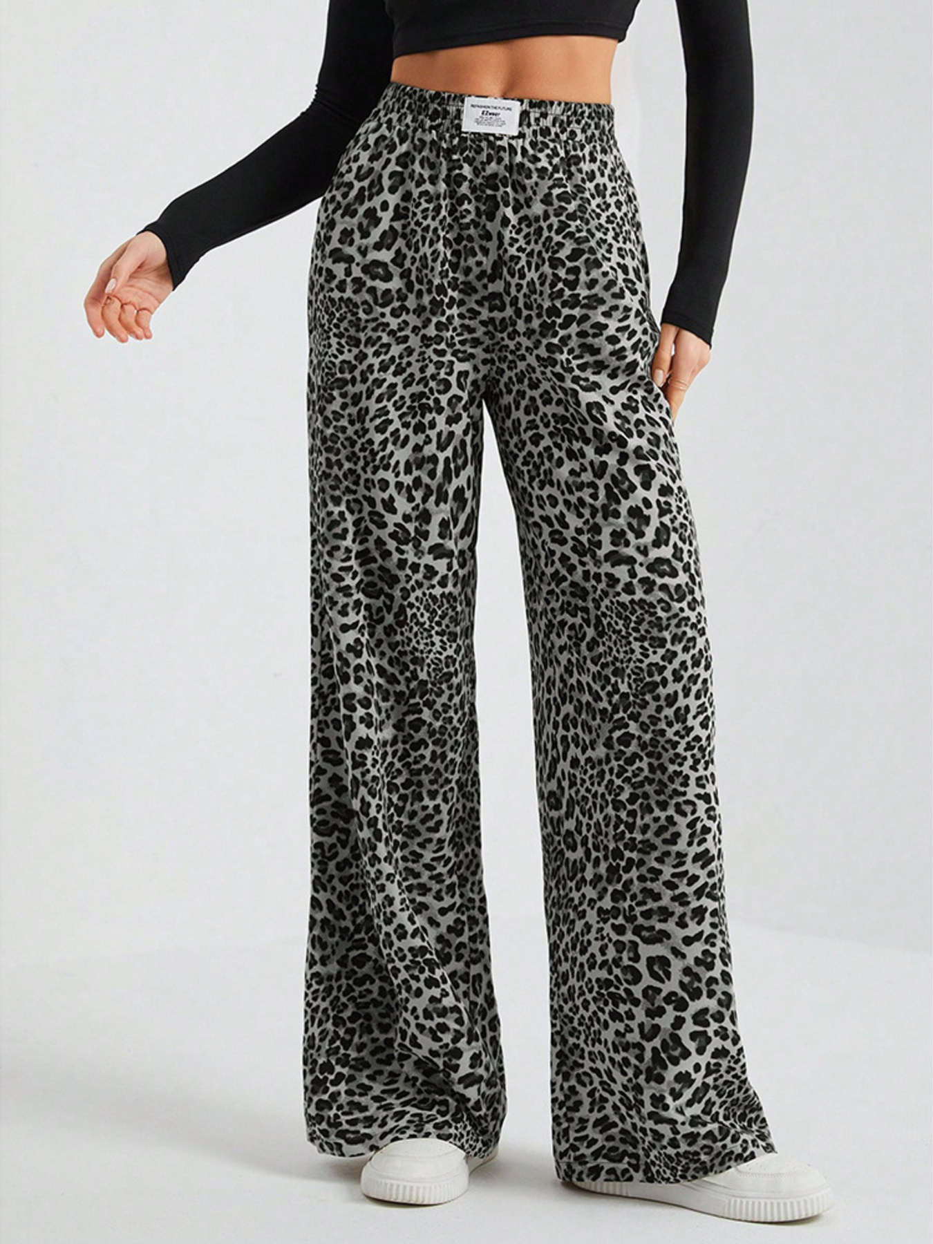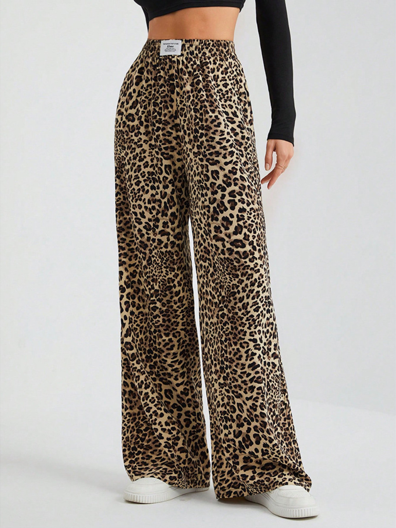 Full Size Leopard Print Wide Leg Pants Plus Size