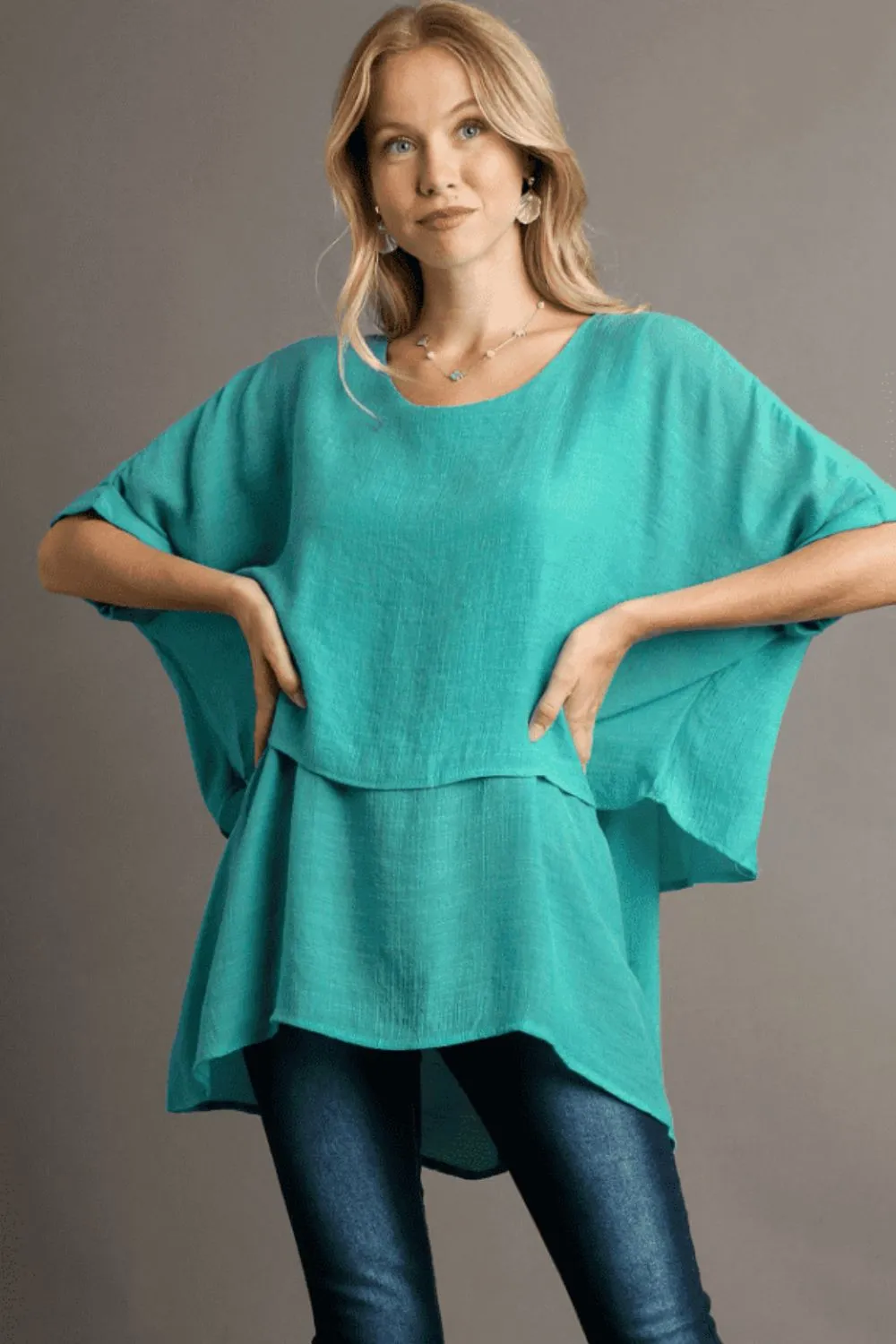 Umgee Full Size Cuffed Half Sleeve Layered Top Plus Size