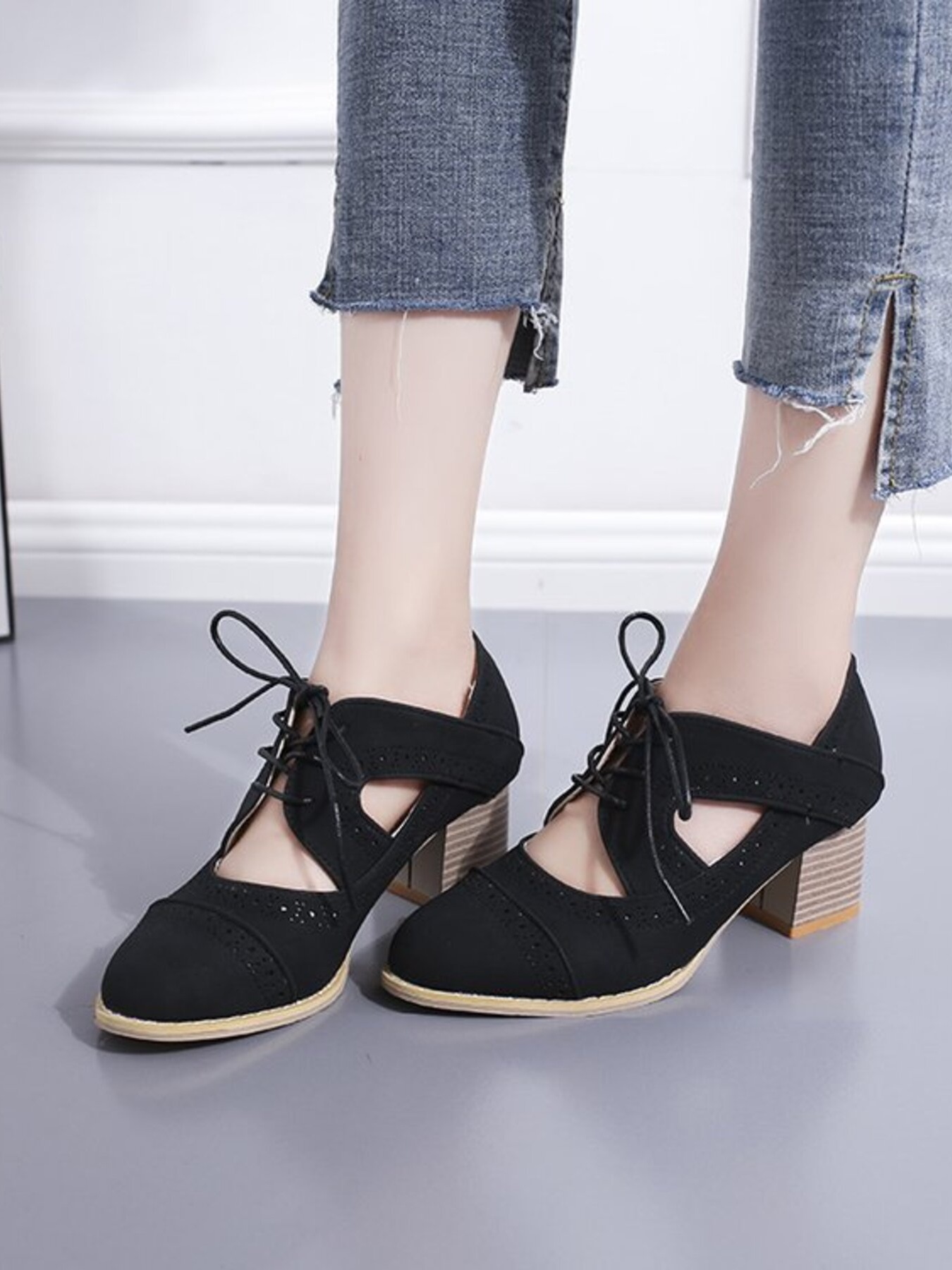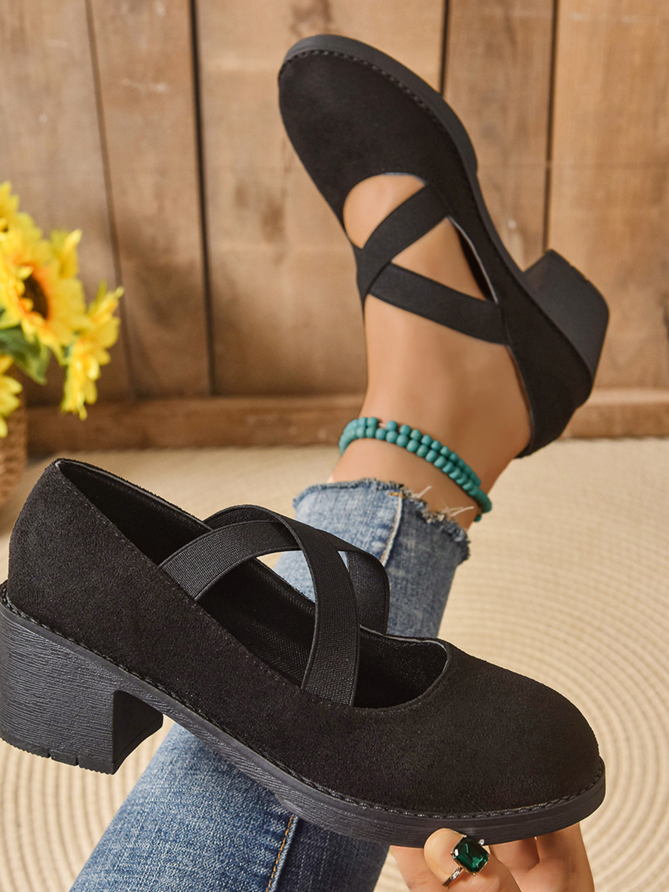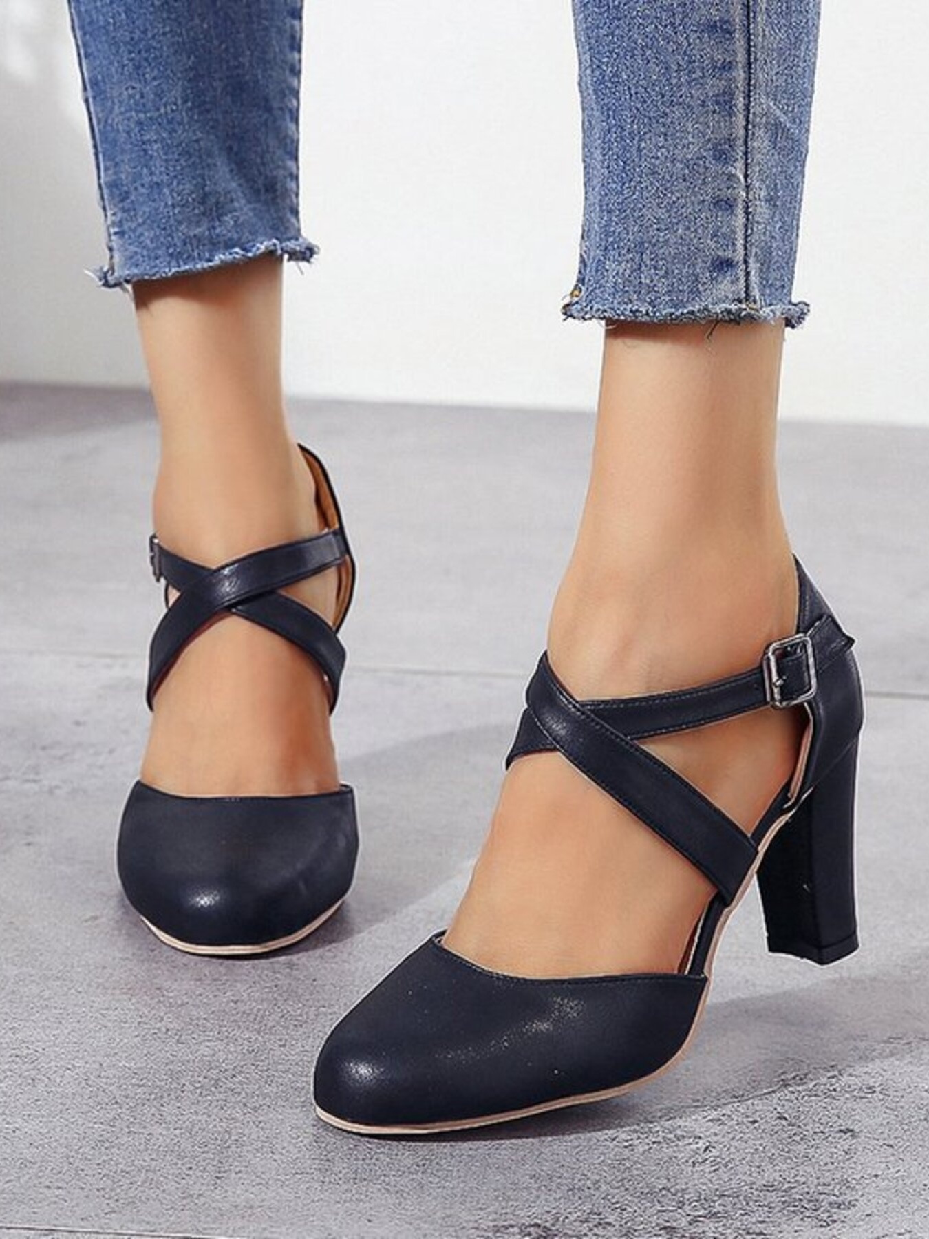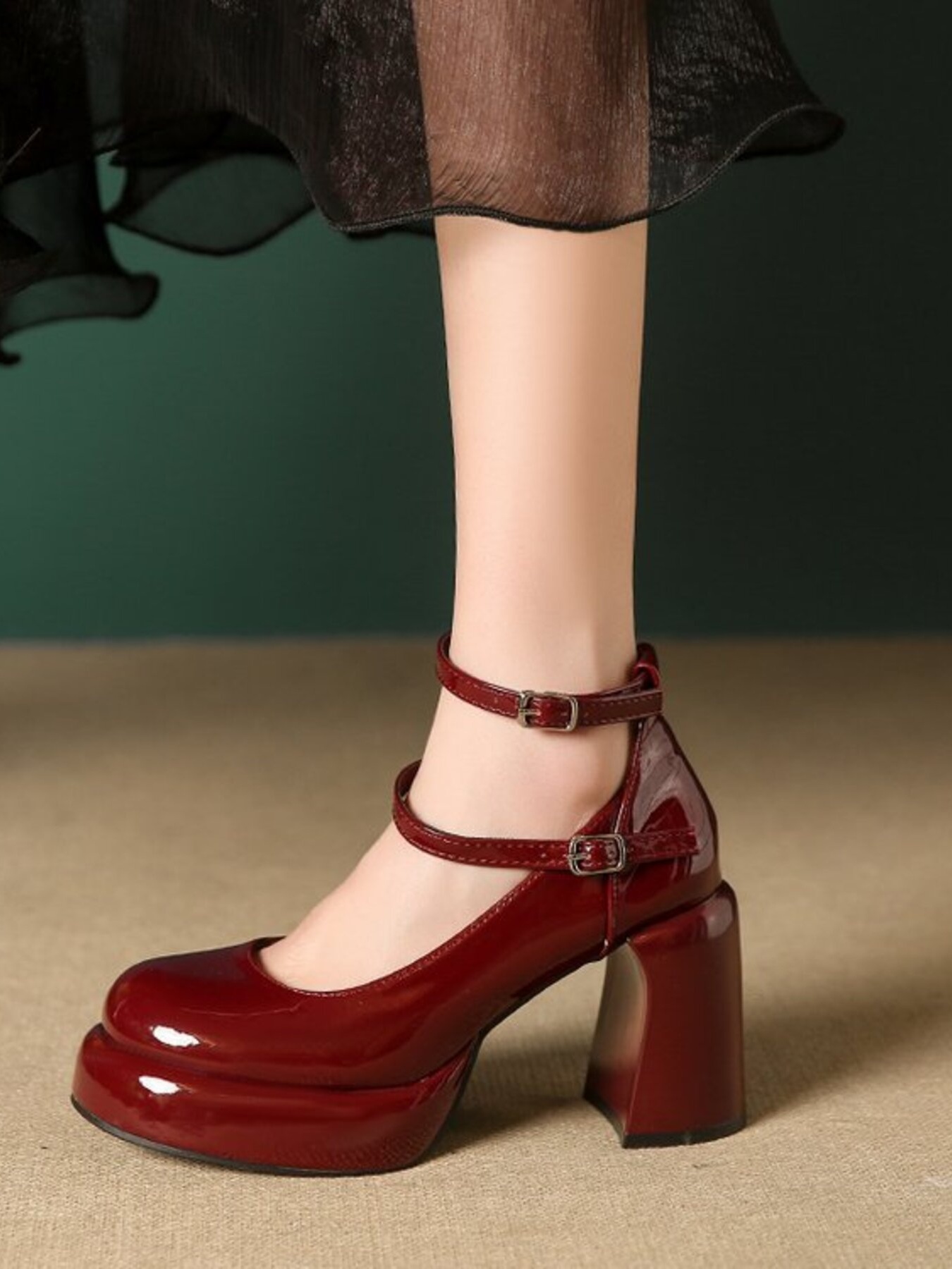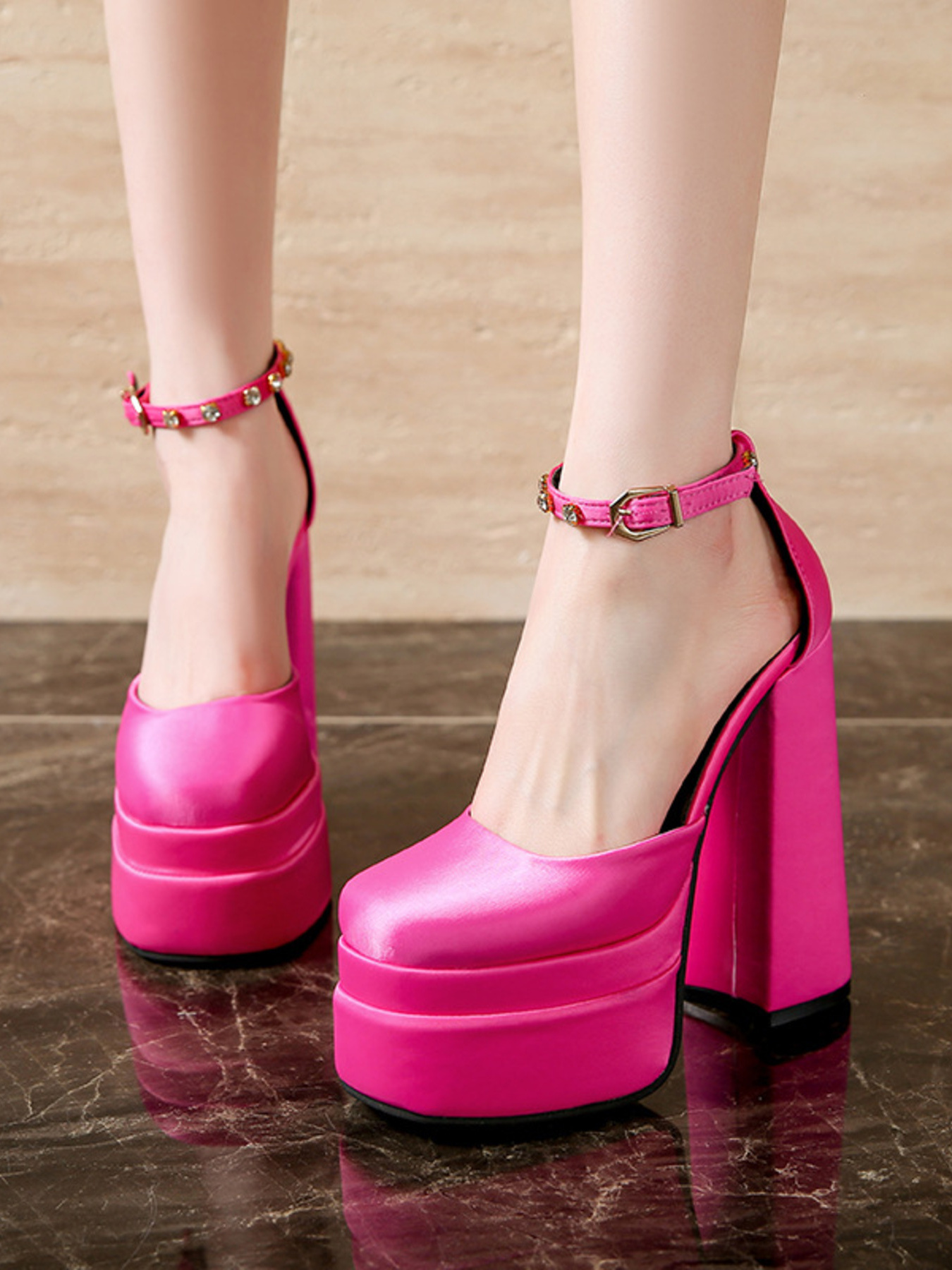 Platform Block Heel Pumps with Ankle Wrap Straps