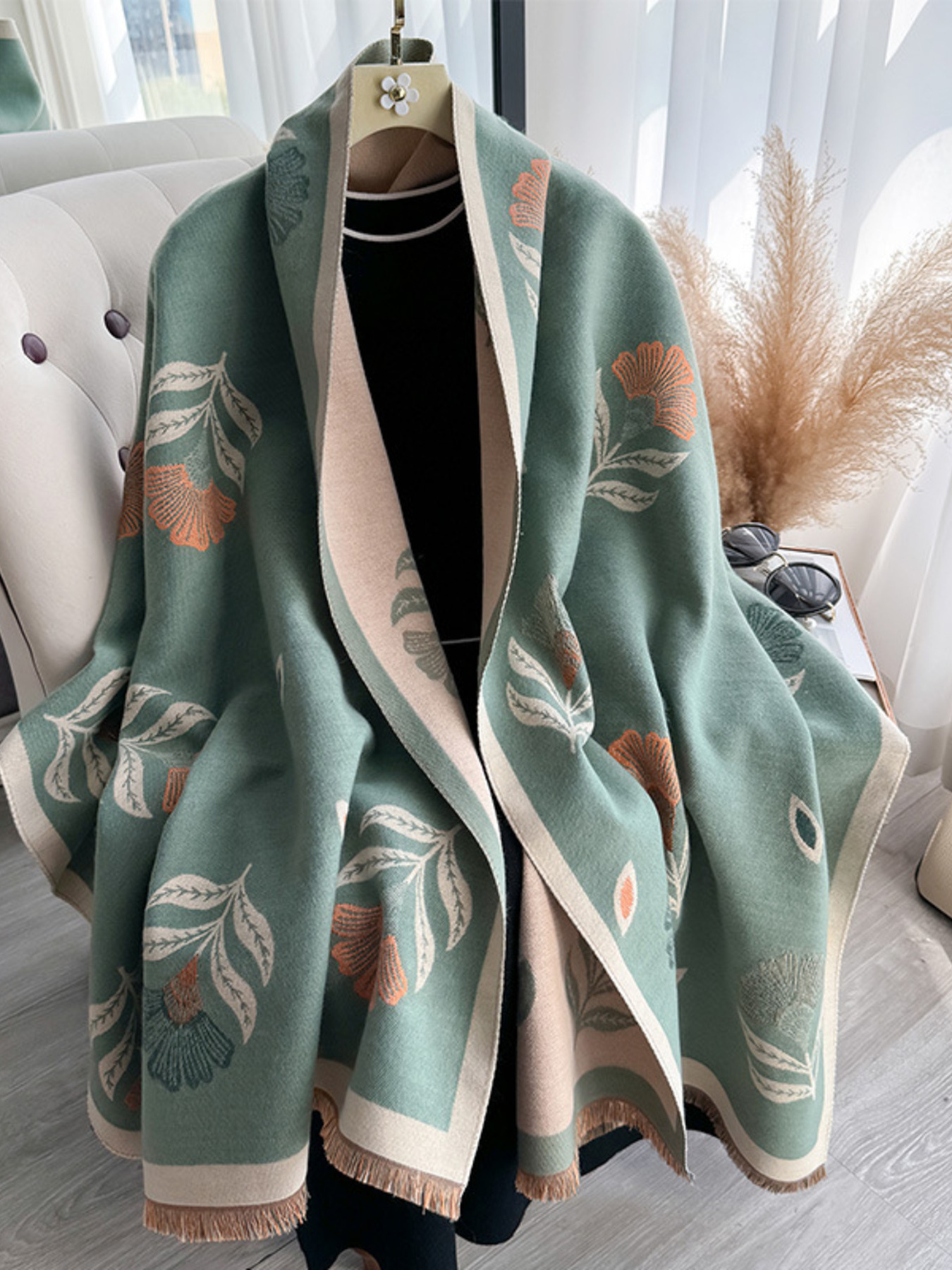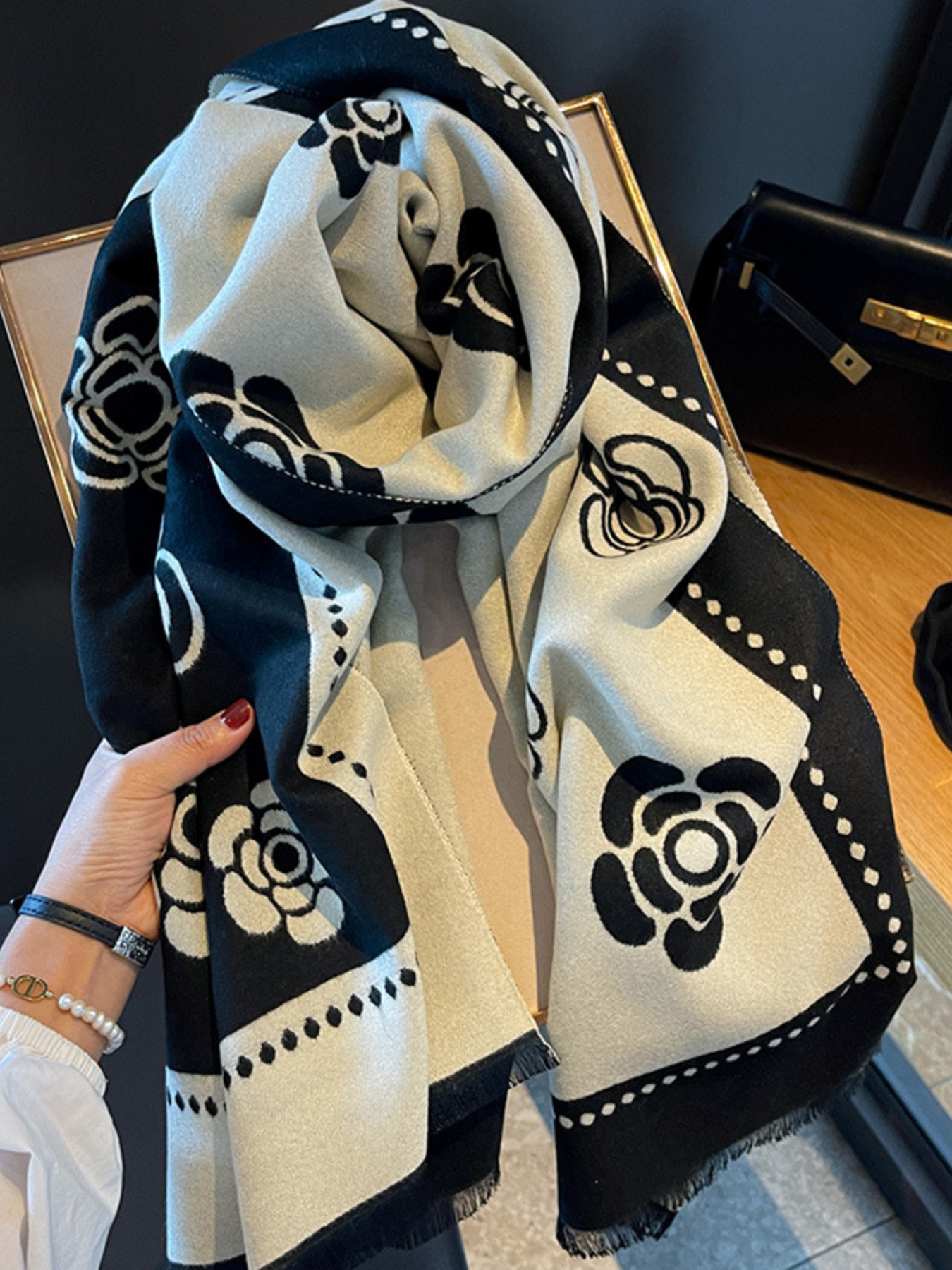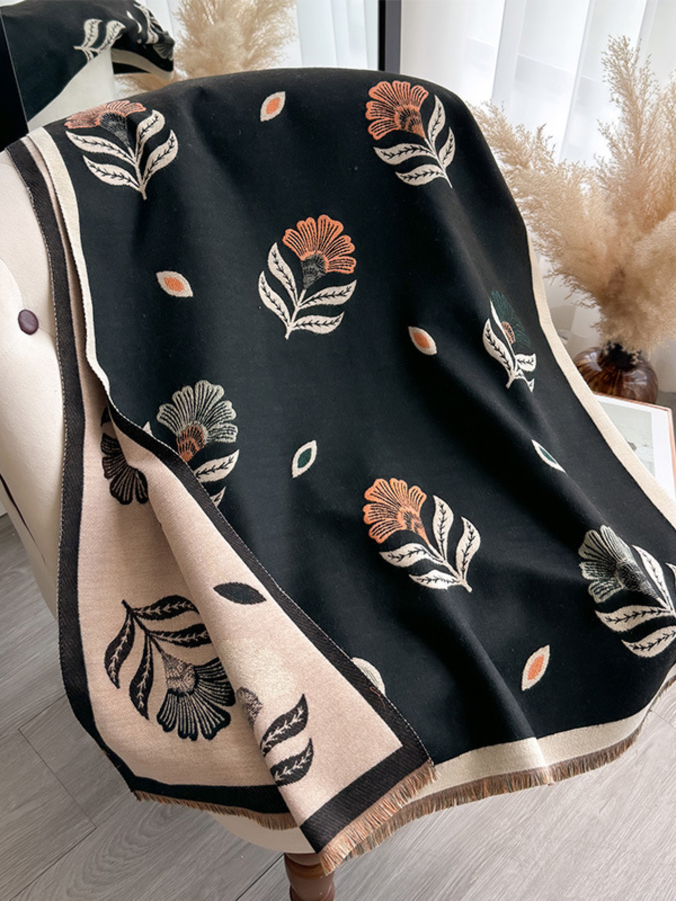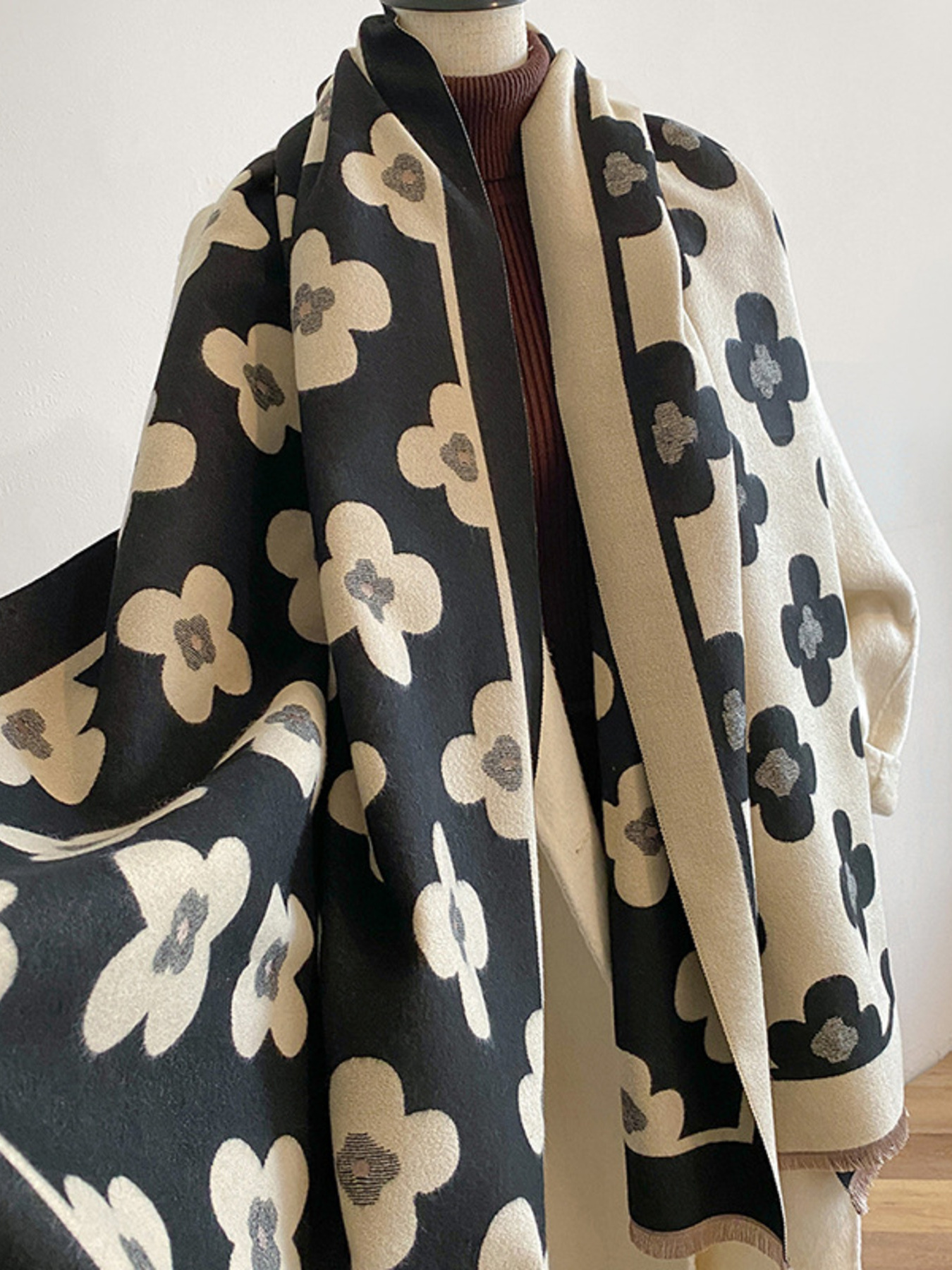 Floral Patterned Warm Scarf