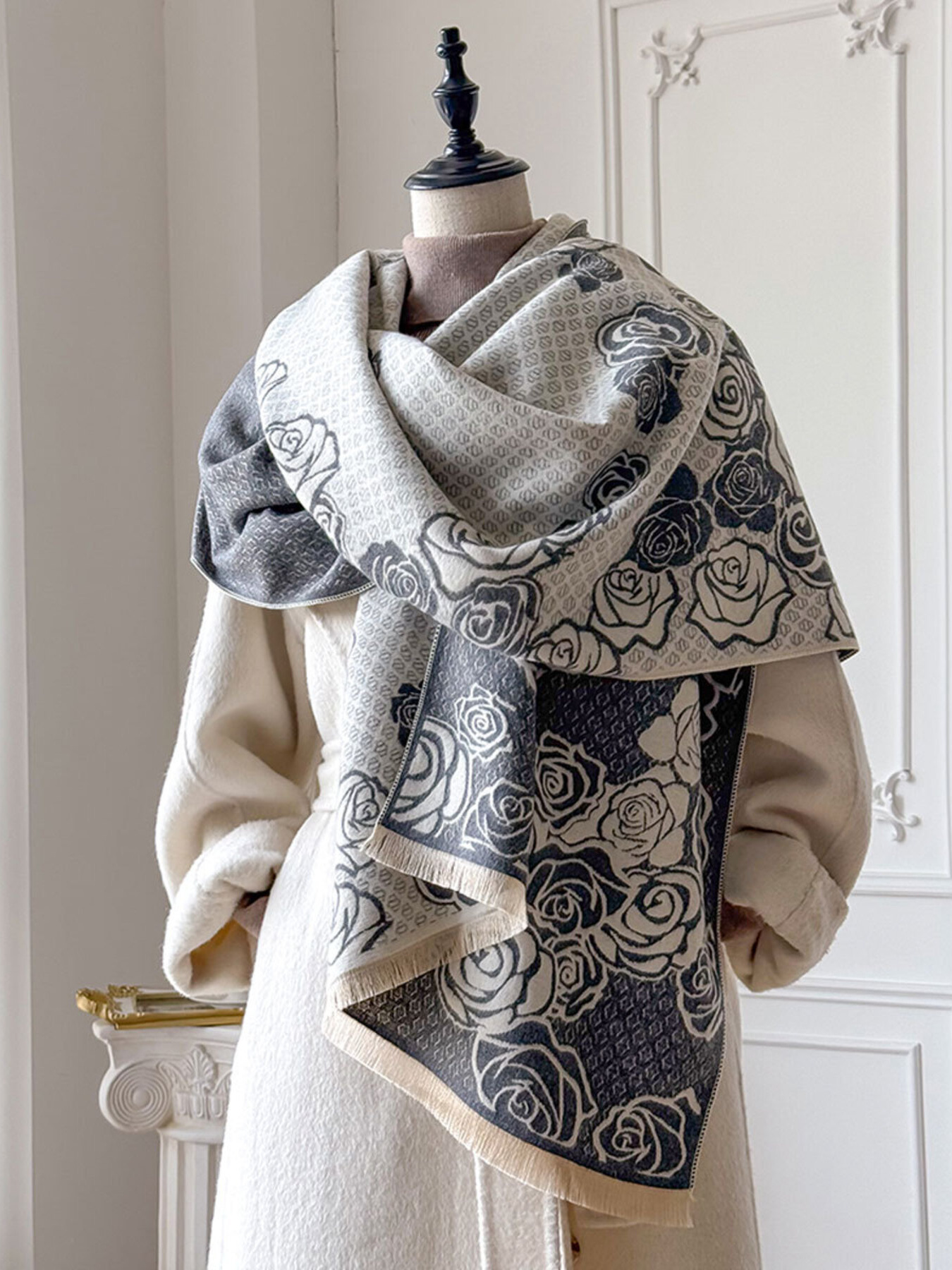 Rose Pattern Warm Scarf