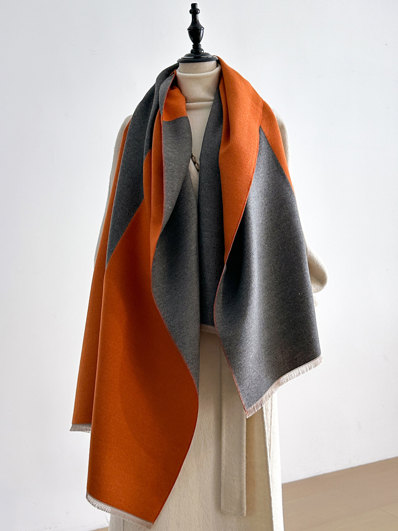 Two-Tone Raw Hem Scarf
