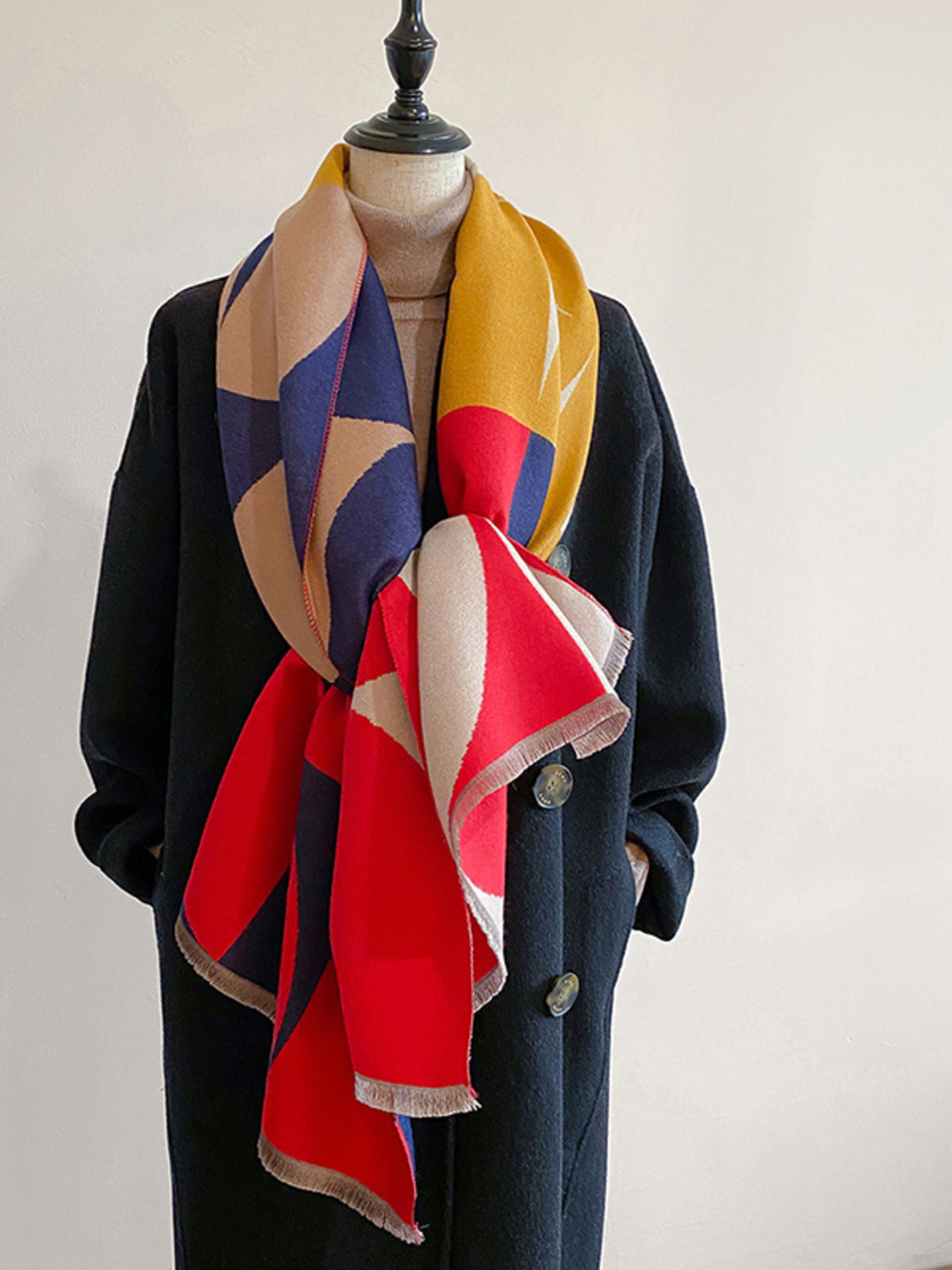 Fringe Color Block Polyester Scarf