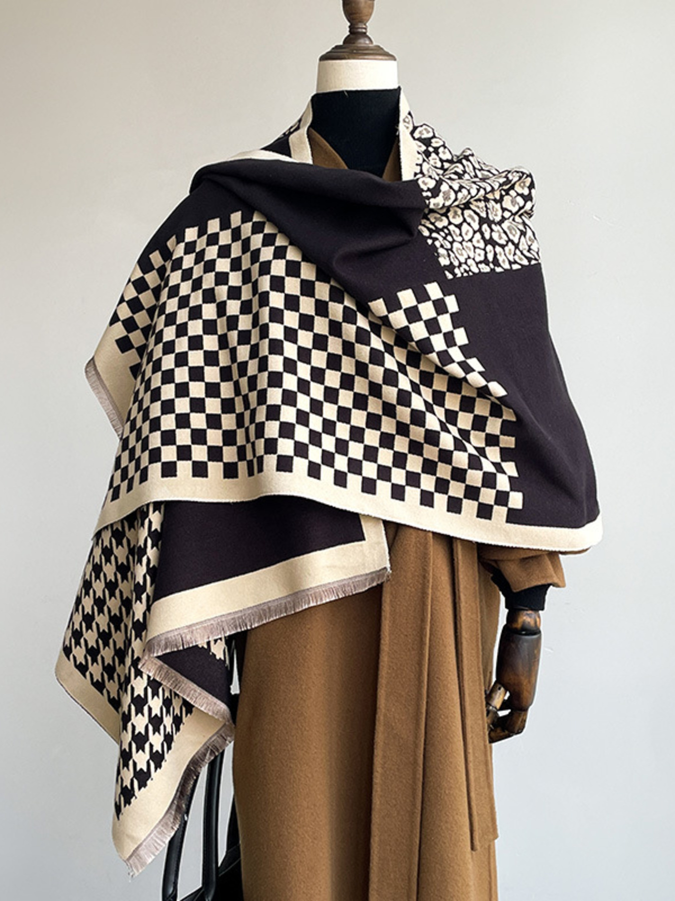 Checkered Raw Hem Scarf