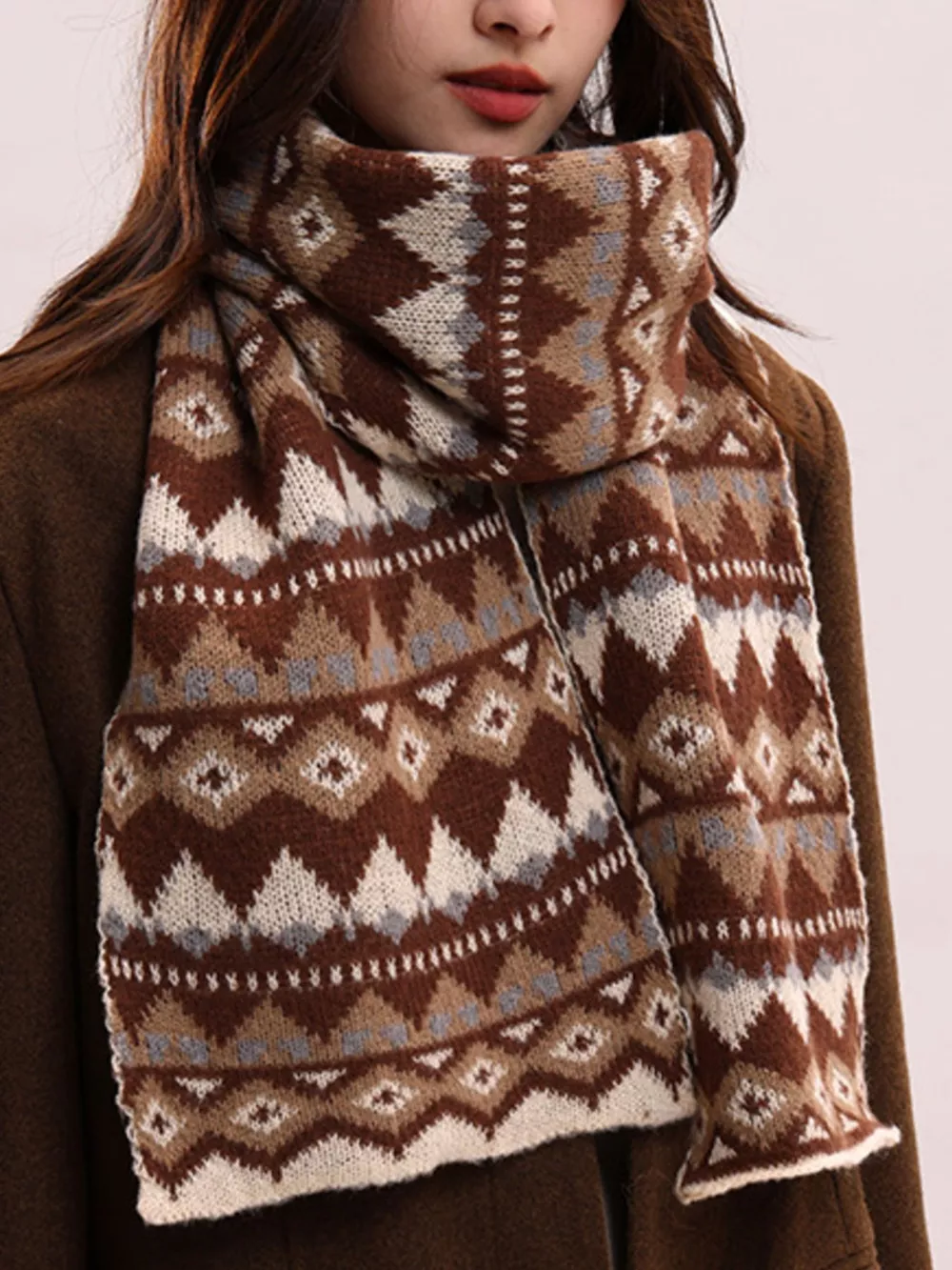 Vintage Geometric Knitted Scarf