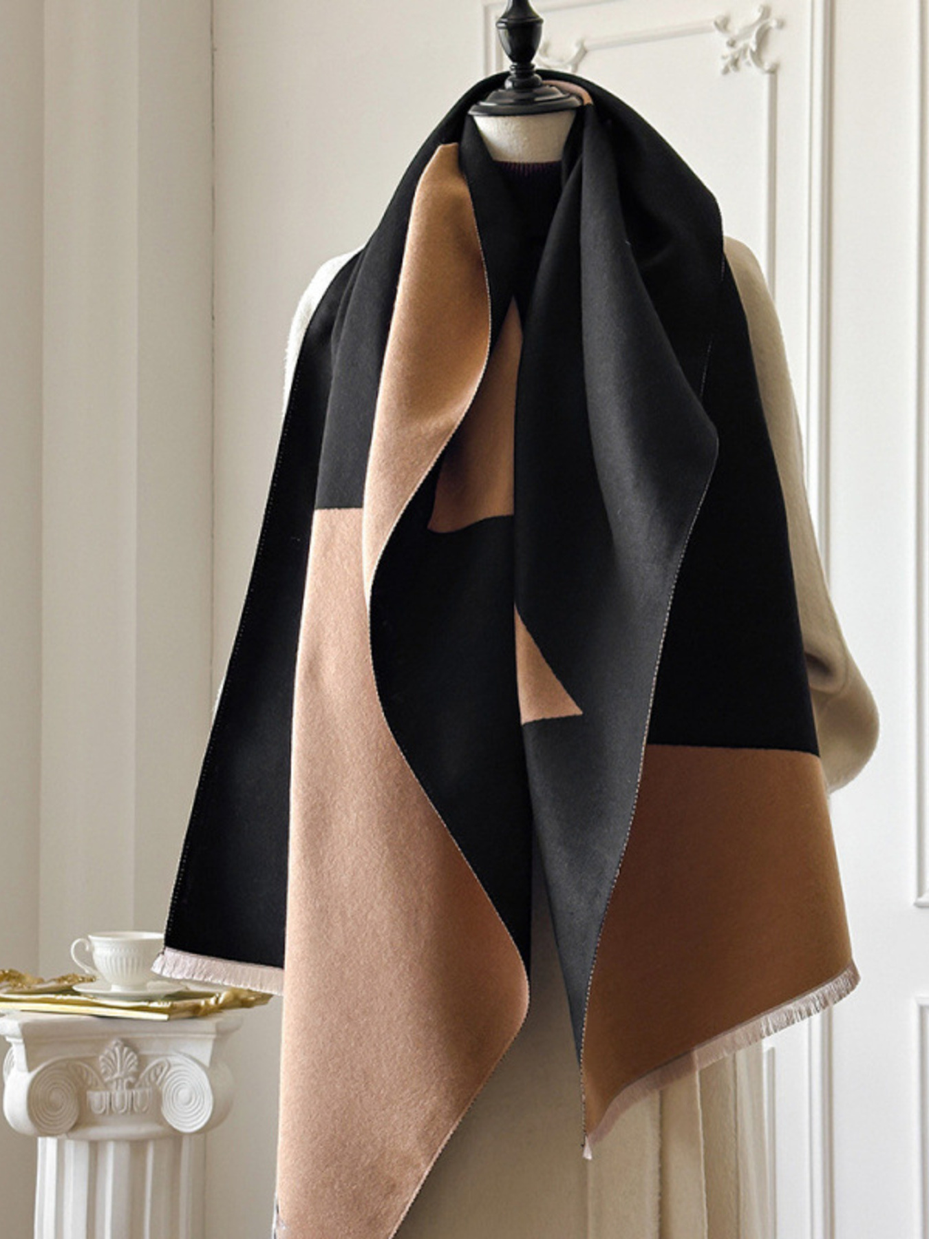 Color Block Raw Hem Scarf