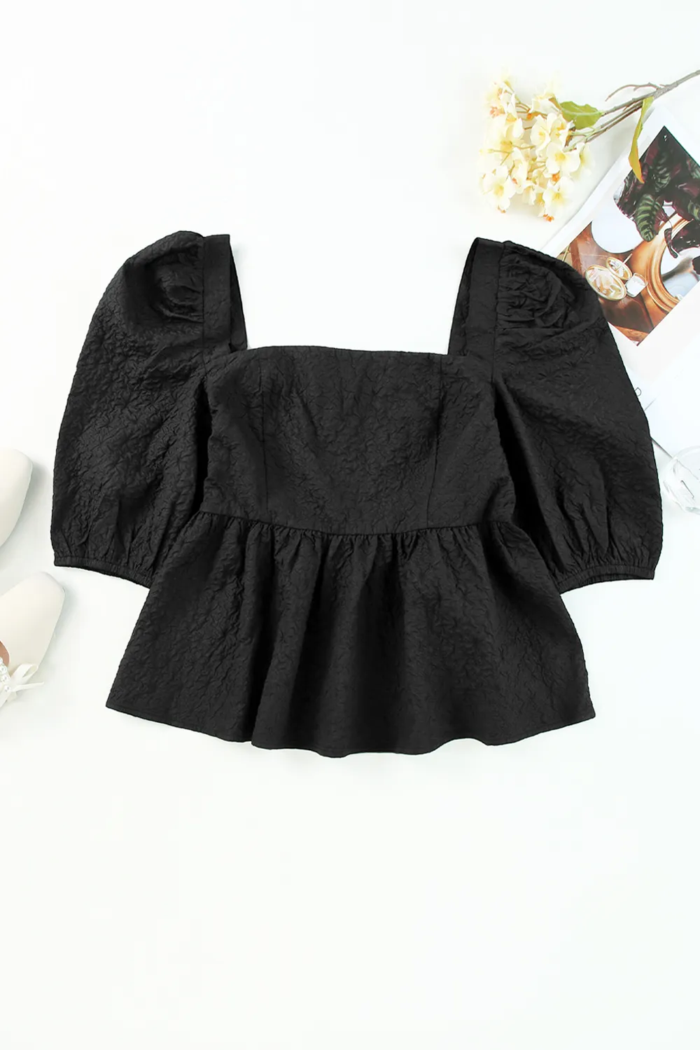 Peplum Square Neck Short Sleeve Blouse