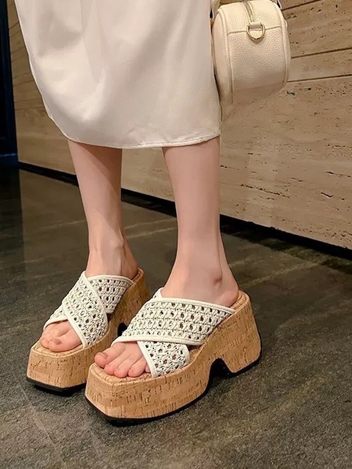 Textured Wedge Platform Sandals