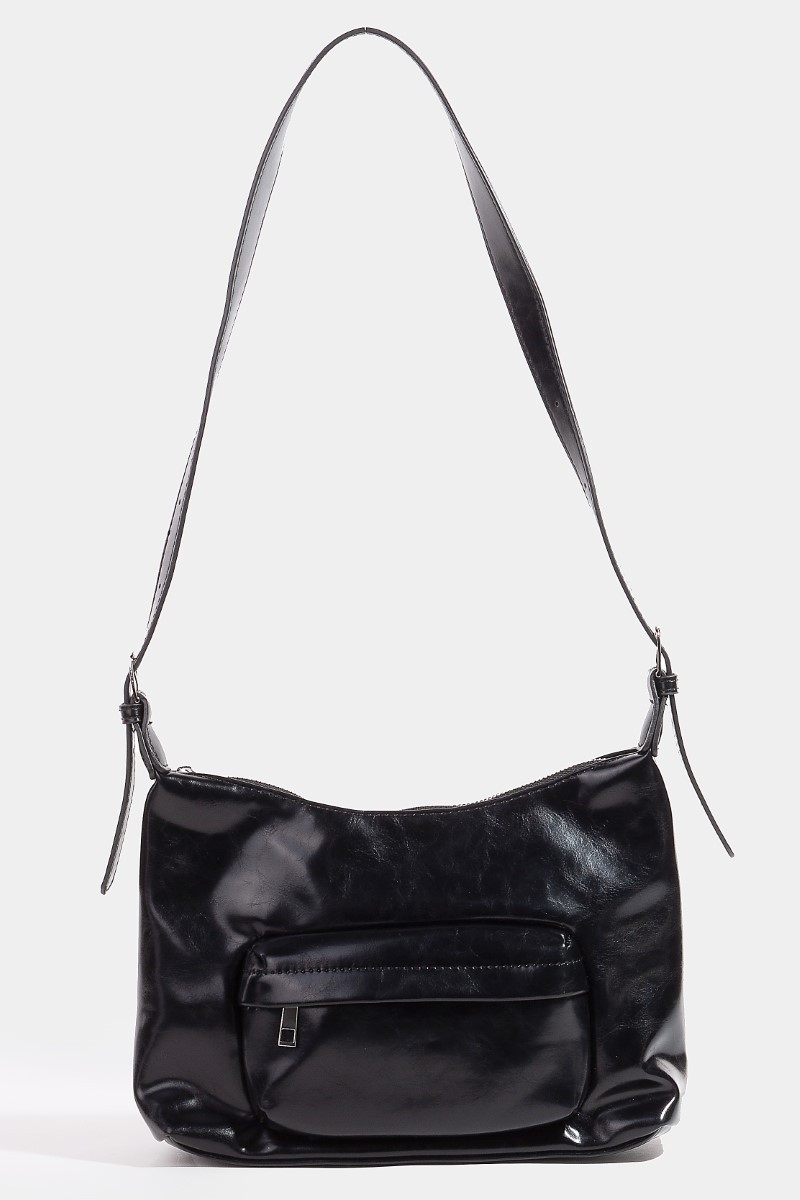 Fame Glossy Faux Leather Shoulder Bag