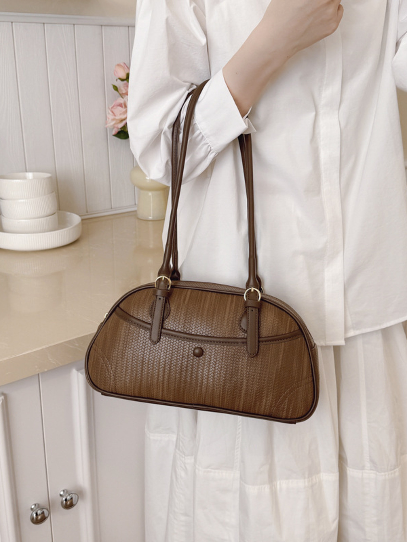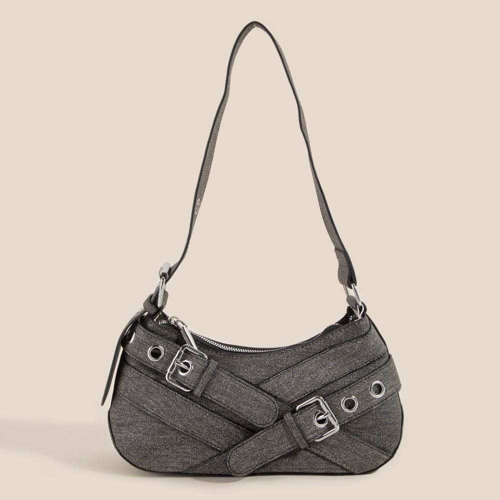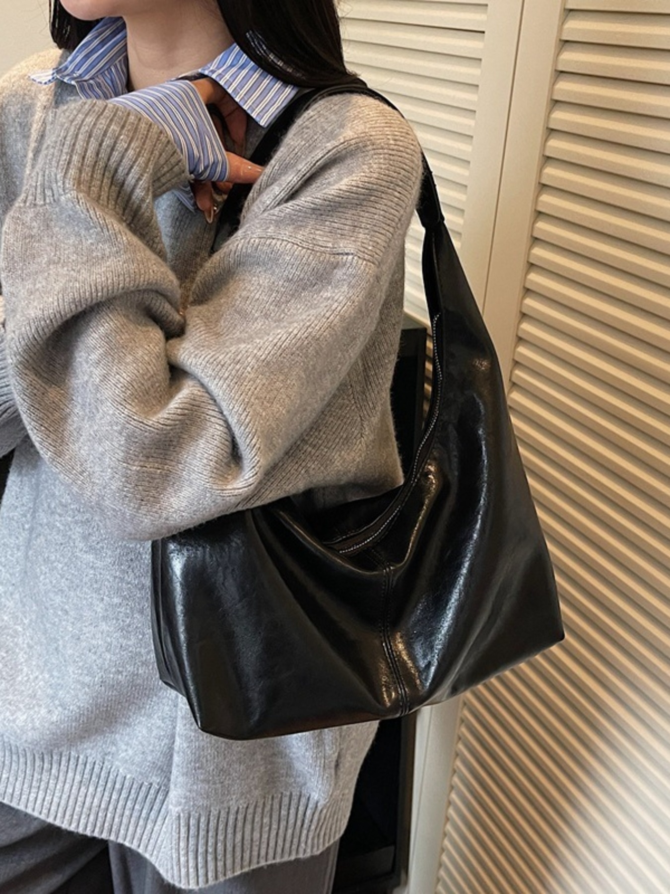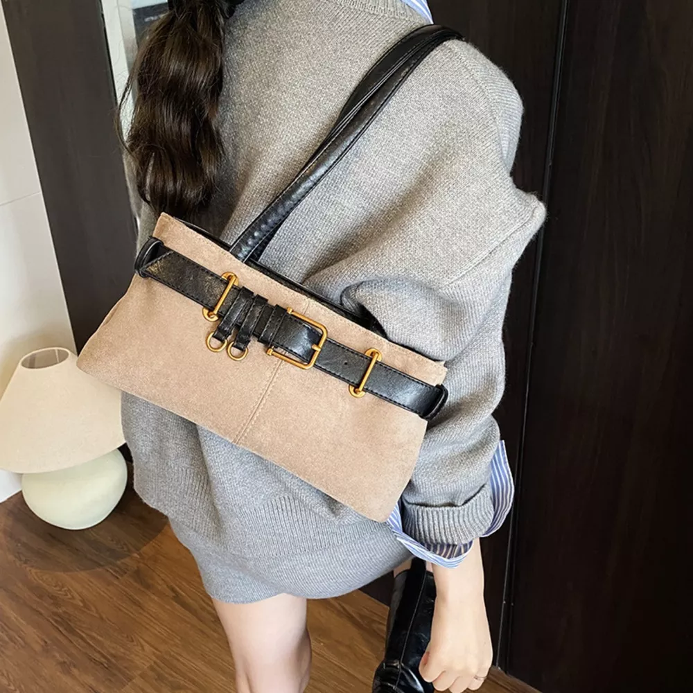 Fame Panel Stitch Crescent Leather Shoulder Bag