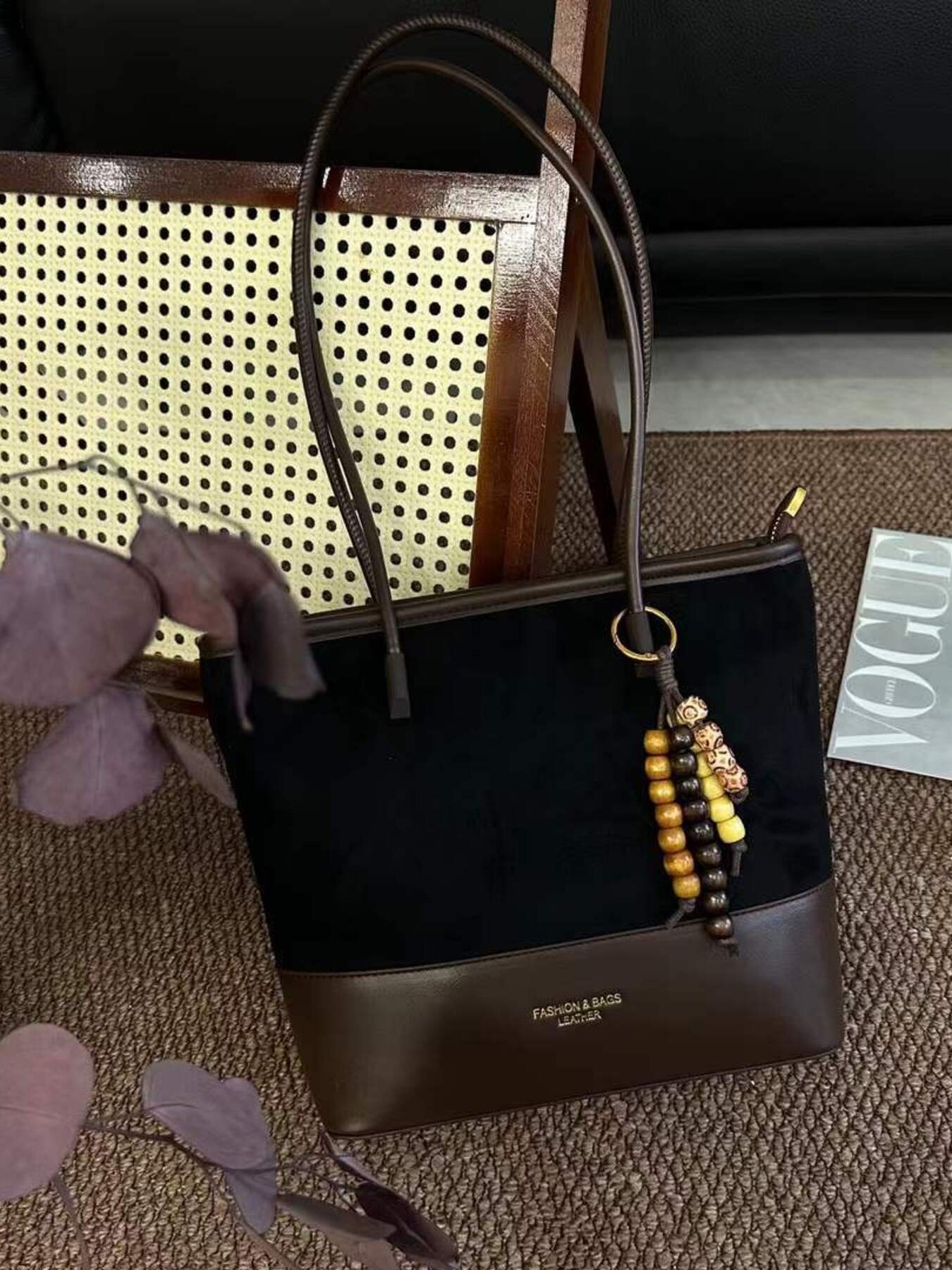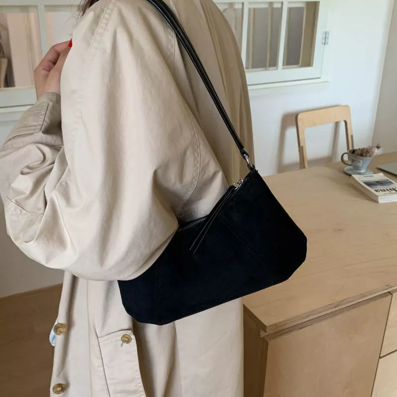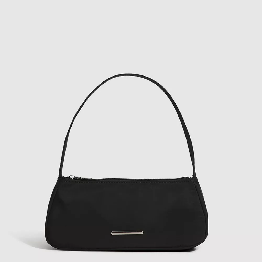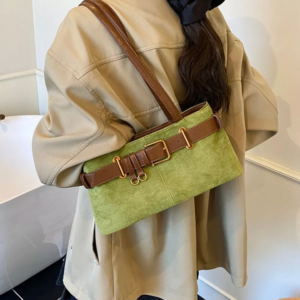 Fame Panel Stitch Crescent Leather Shoulder Bag