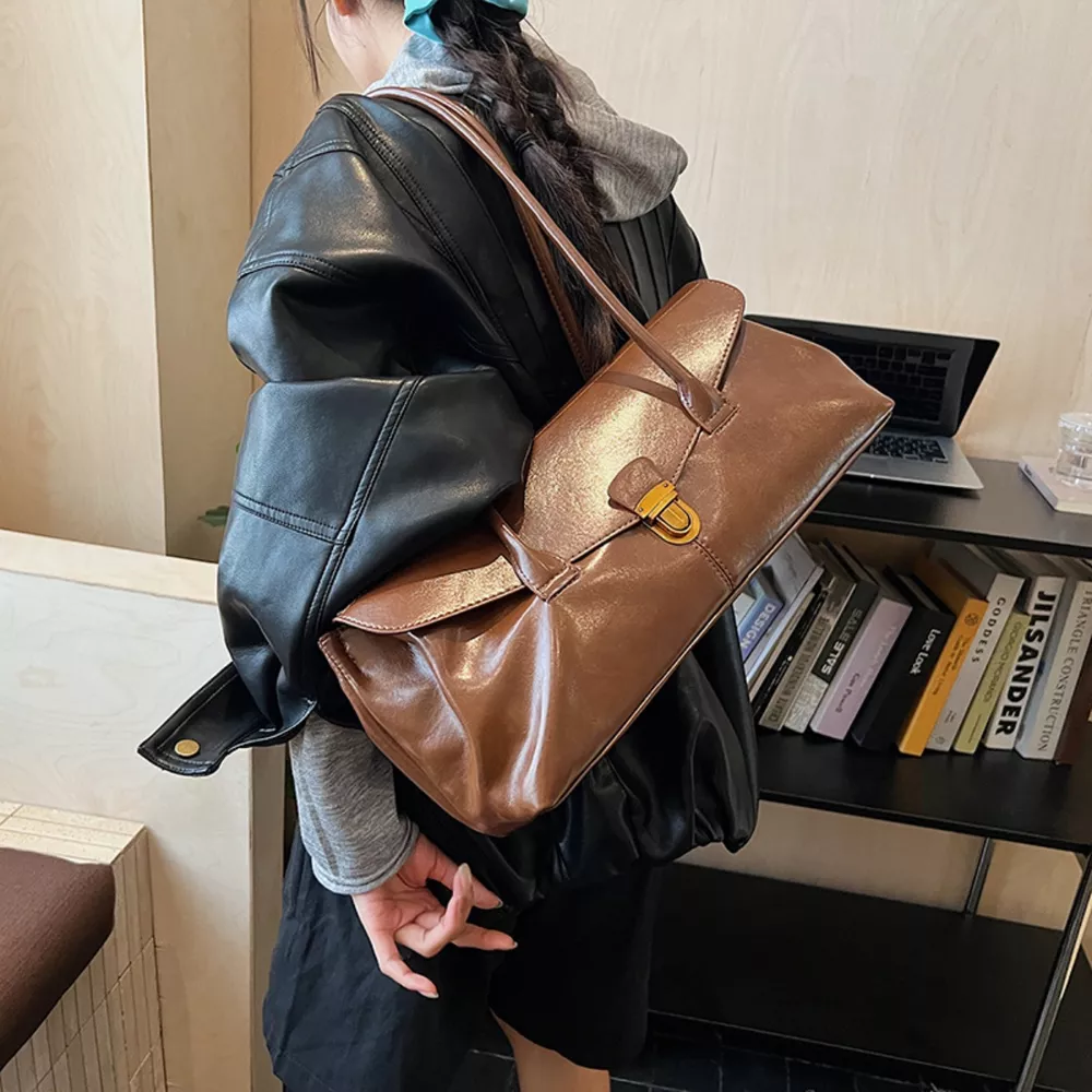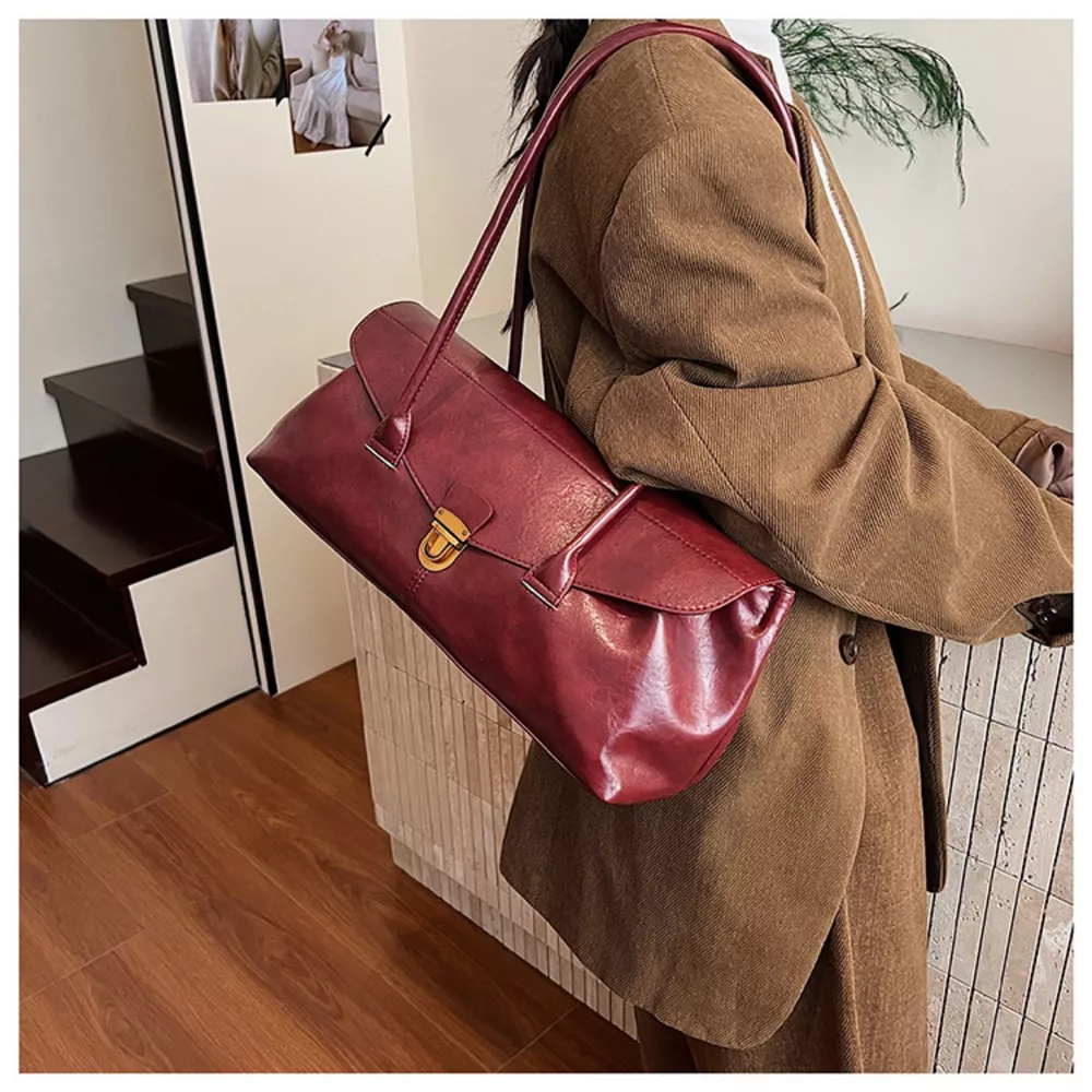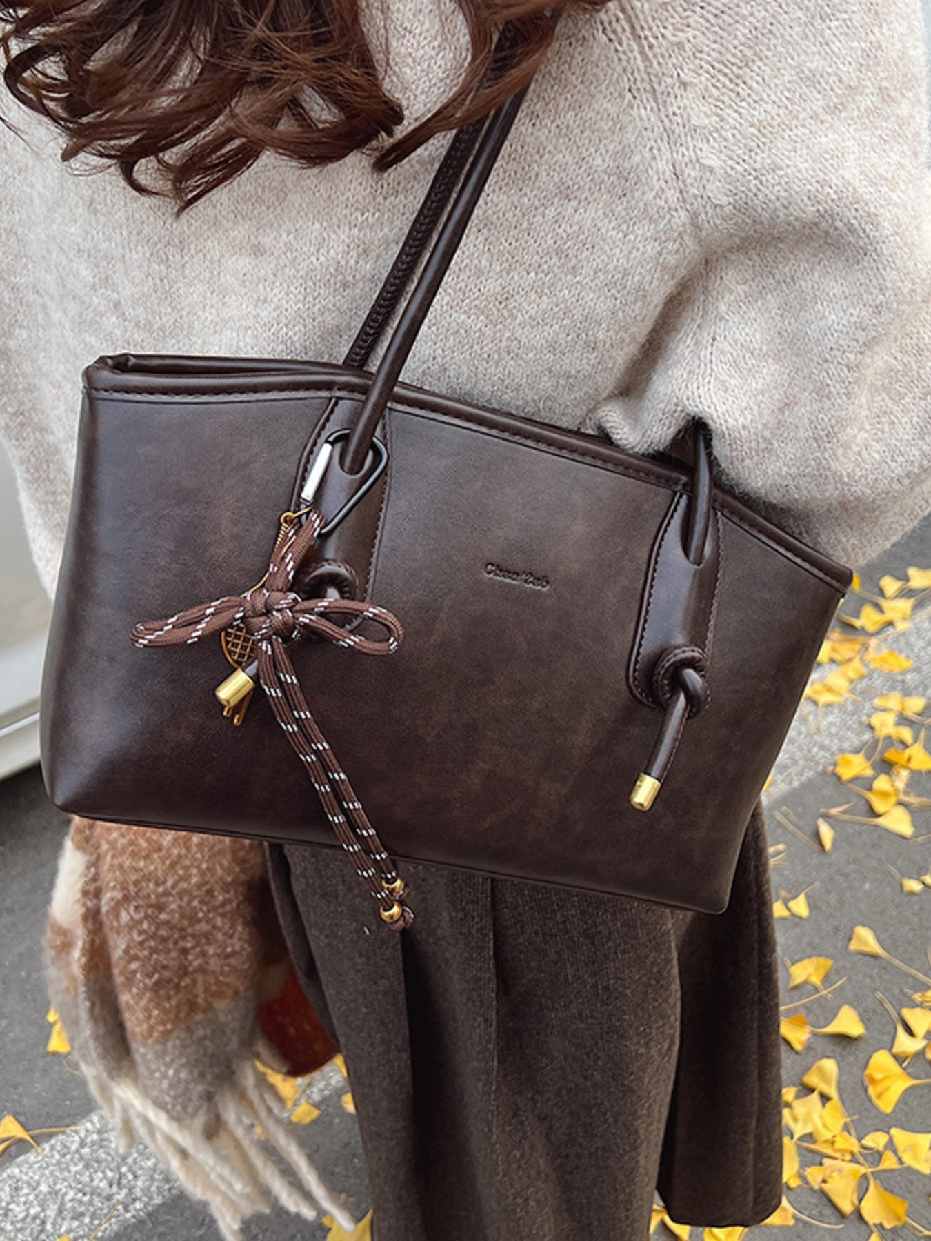 Fame Ruched Detail Faux Leather Shoulder Bag