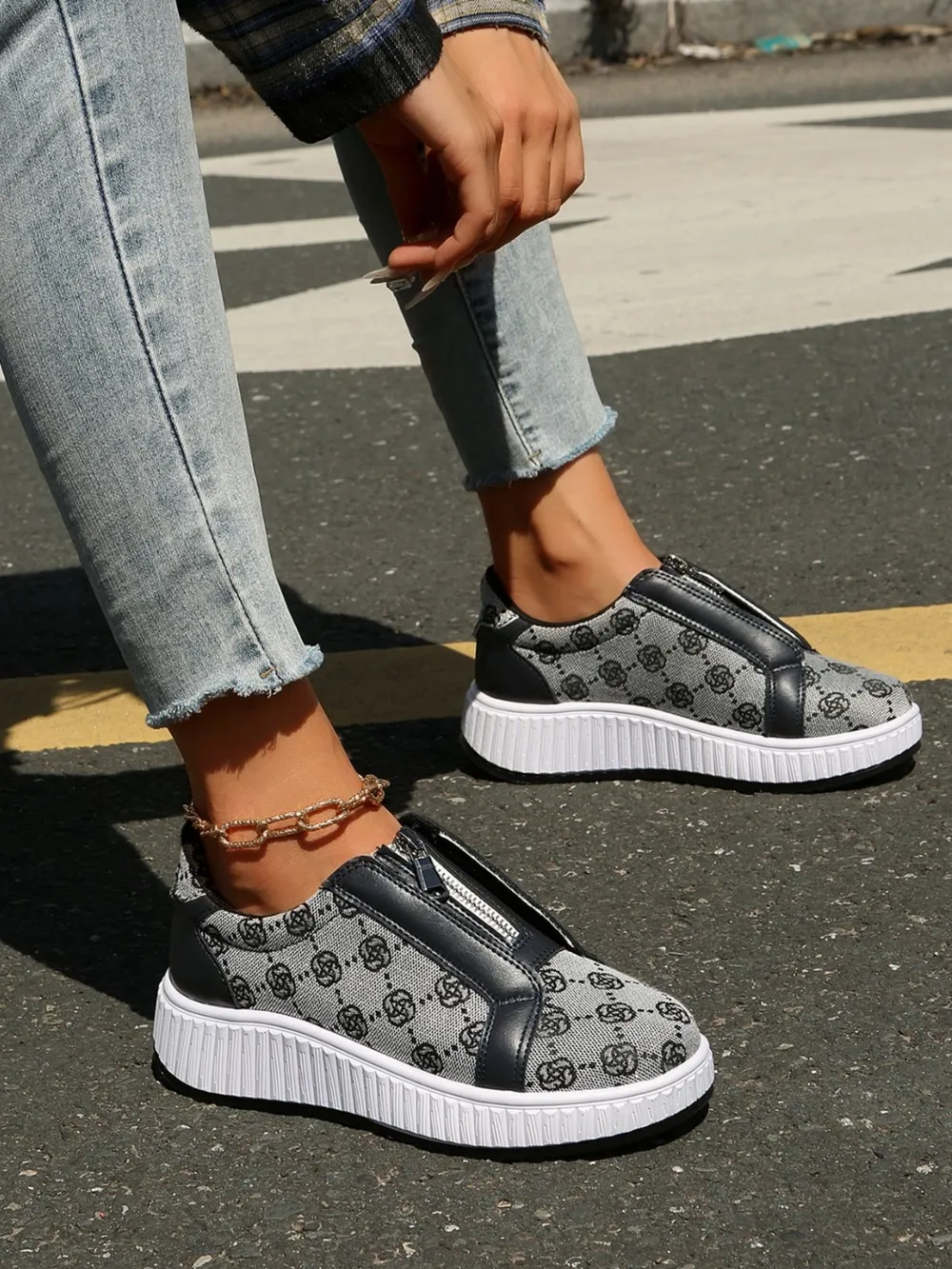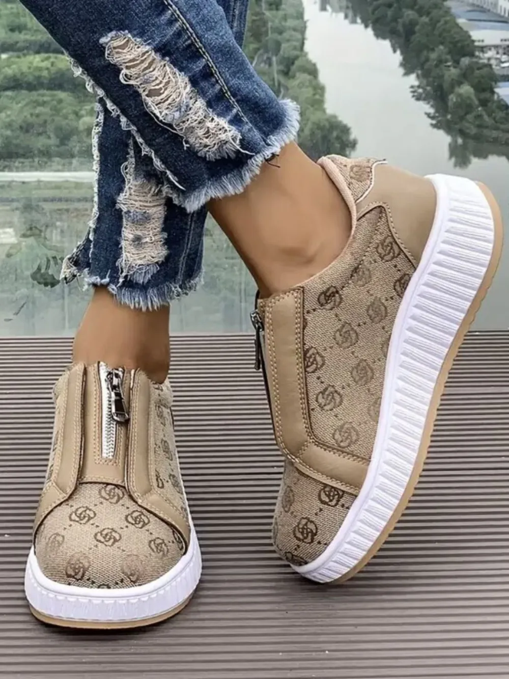Floral Round Toe Sneakers with Zip