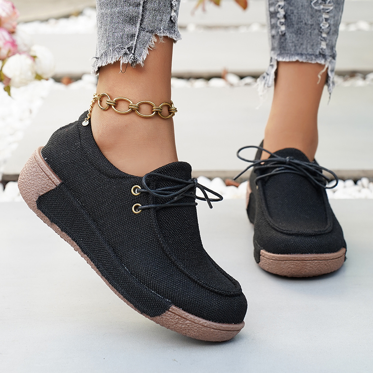 Contrast Lace Up Casual Sneakers