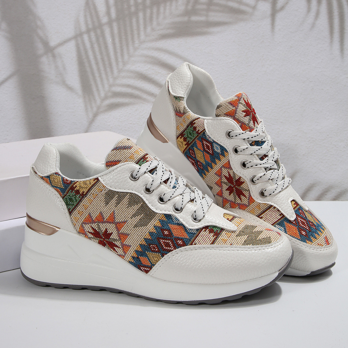 Geometric Lace Up Wedge Sneakers