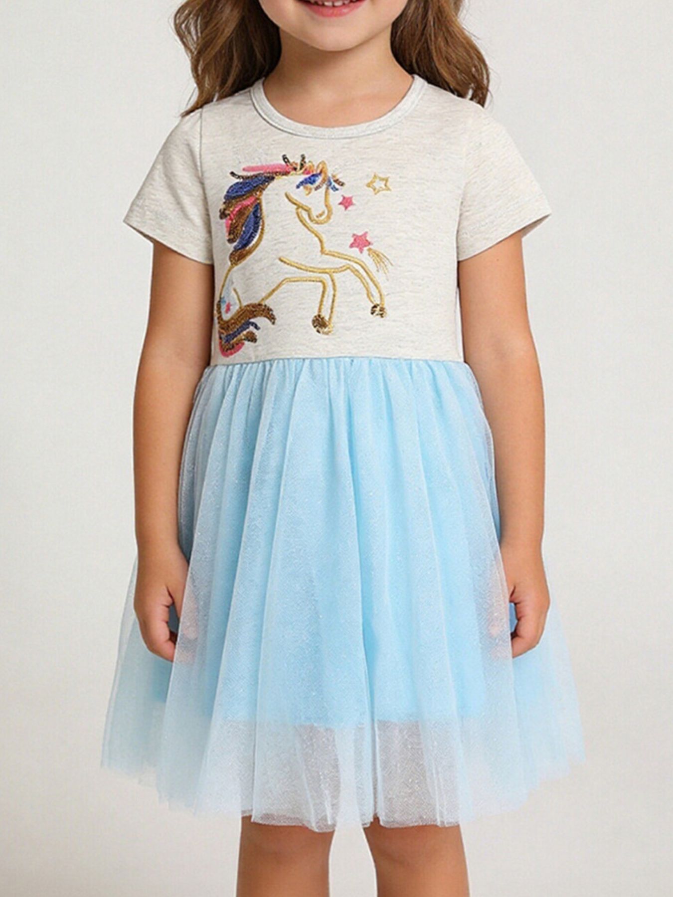 Children's Unicorn Sequin Embroidered Tulle Dress