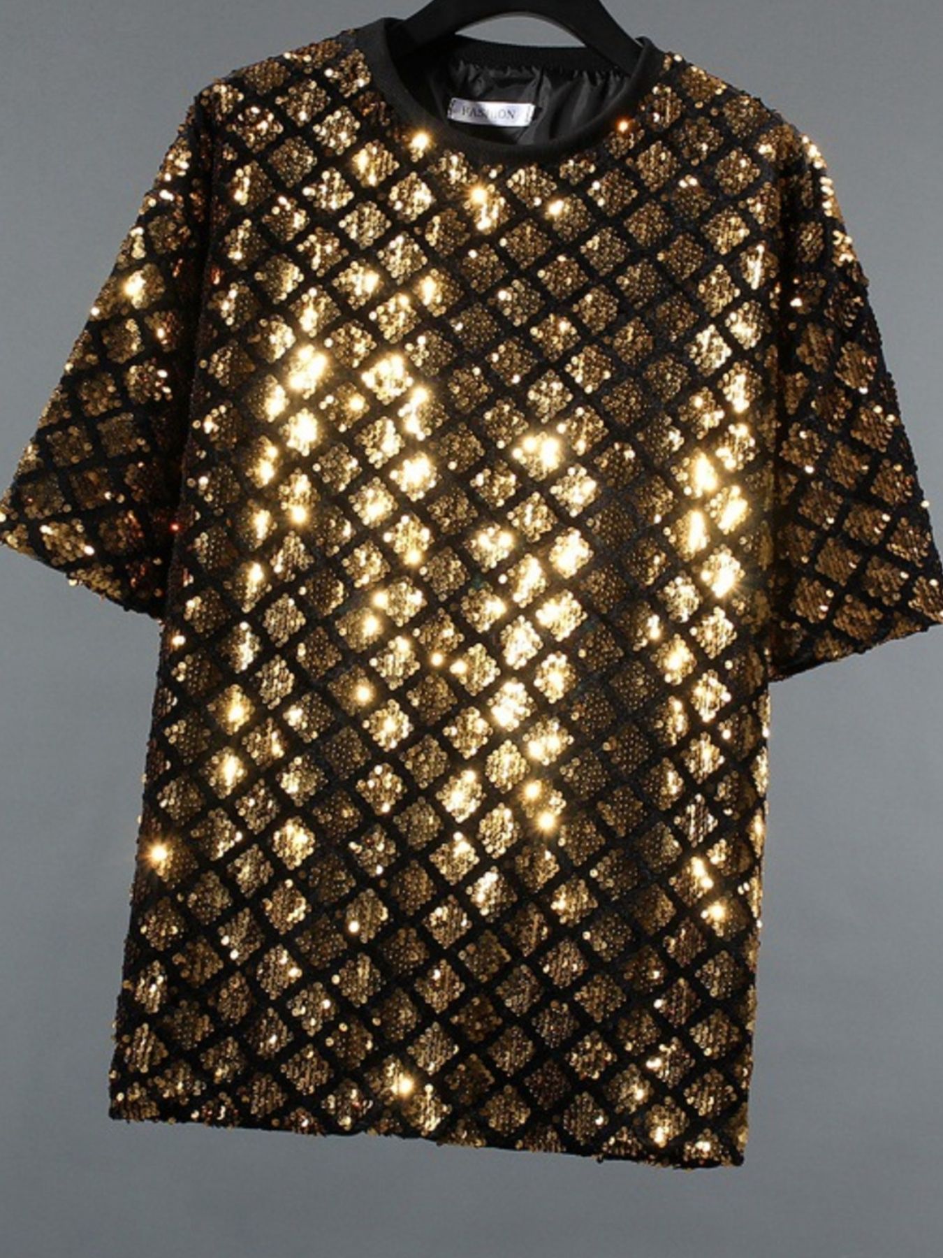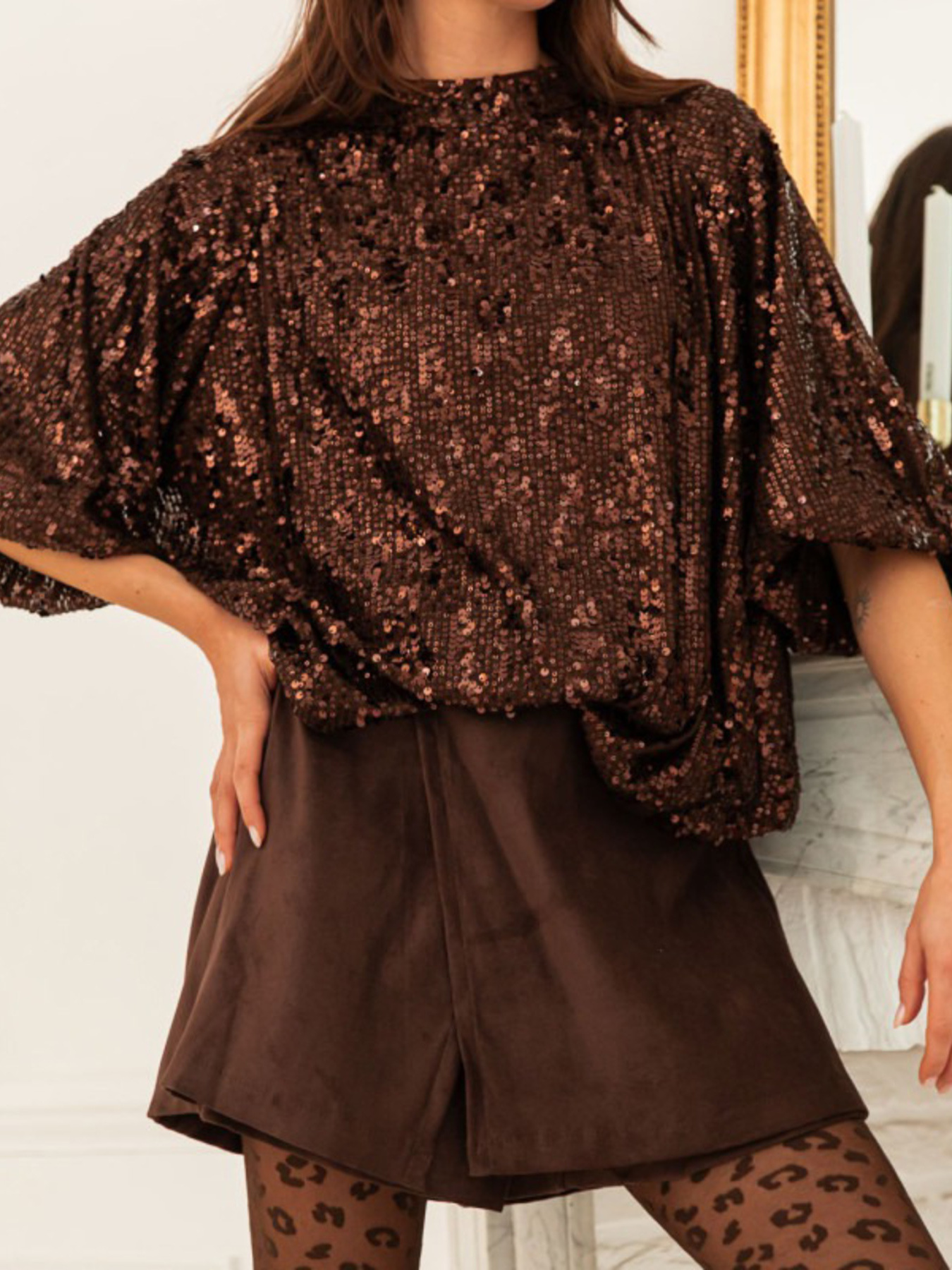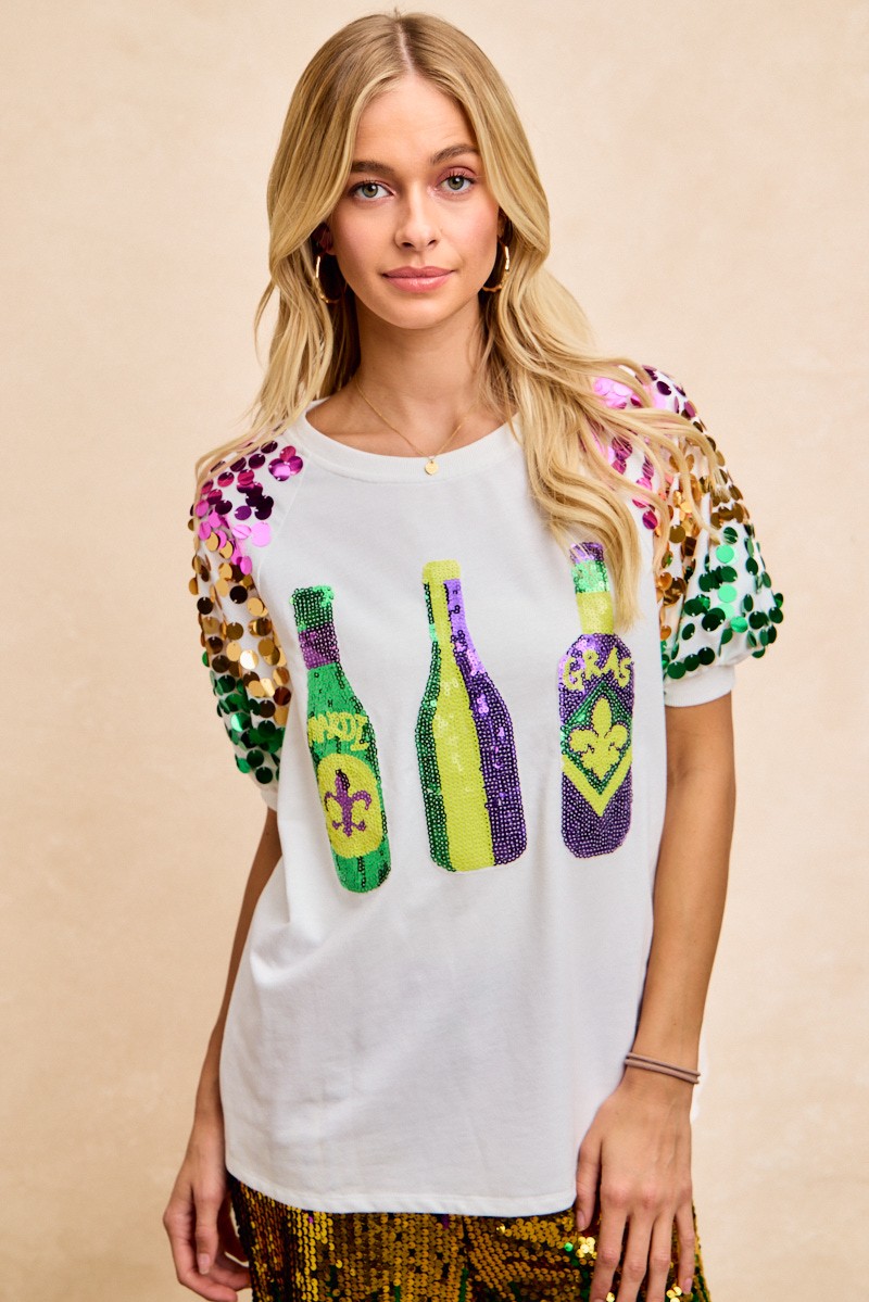 Sequin Mardi Gras Bottles Spangled Sleeve Top