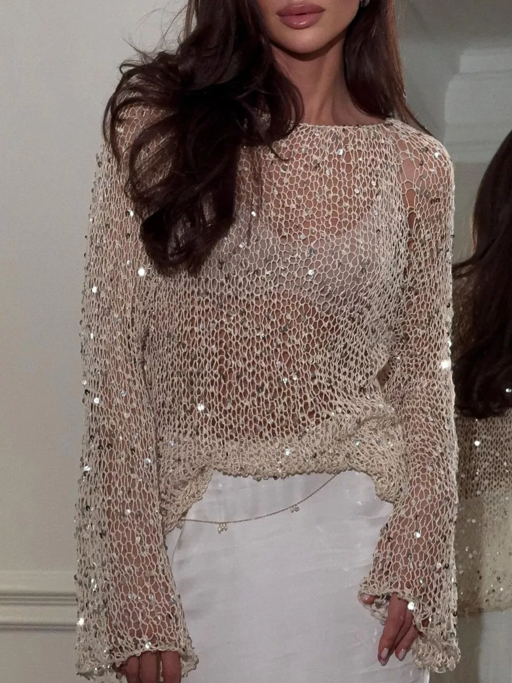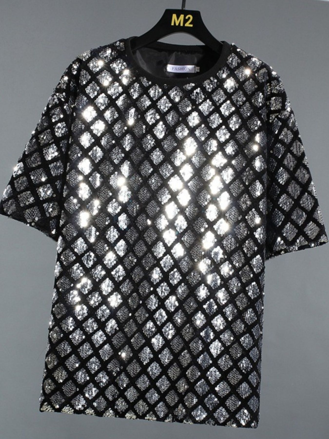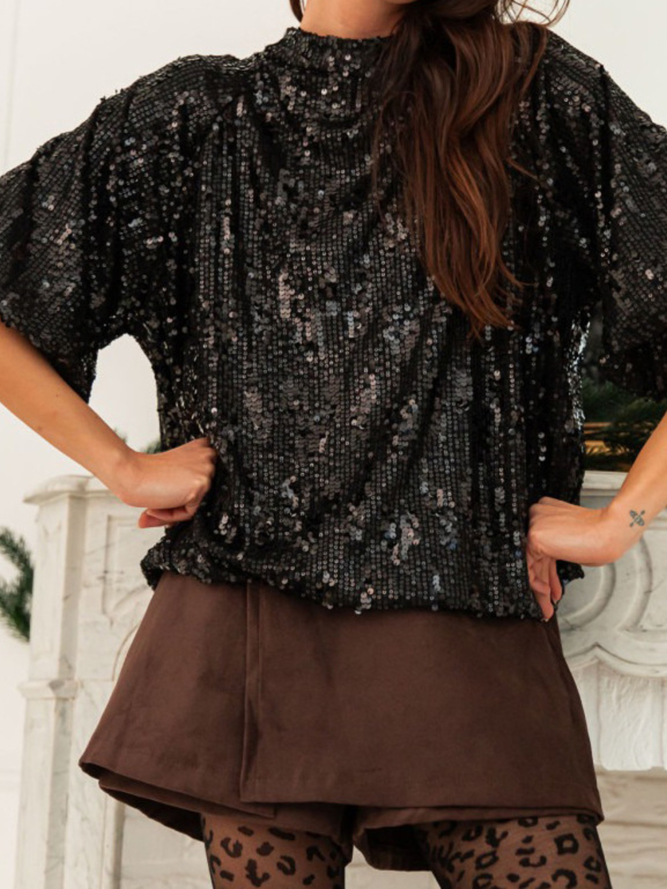 Sequin Mardi Gras Bottles Spangled Sleeve Top