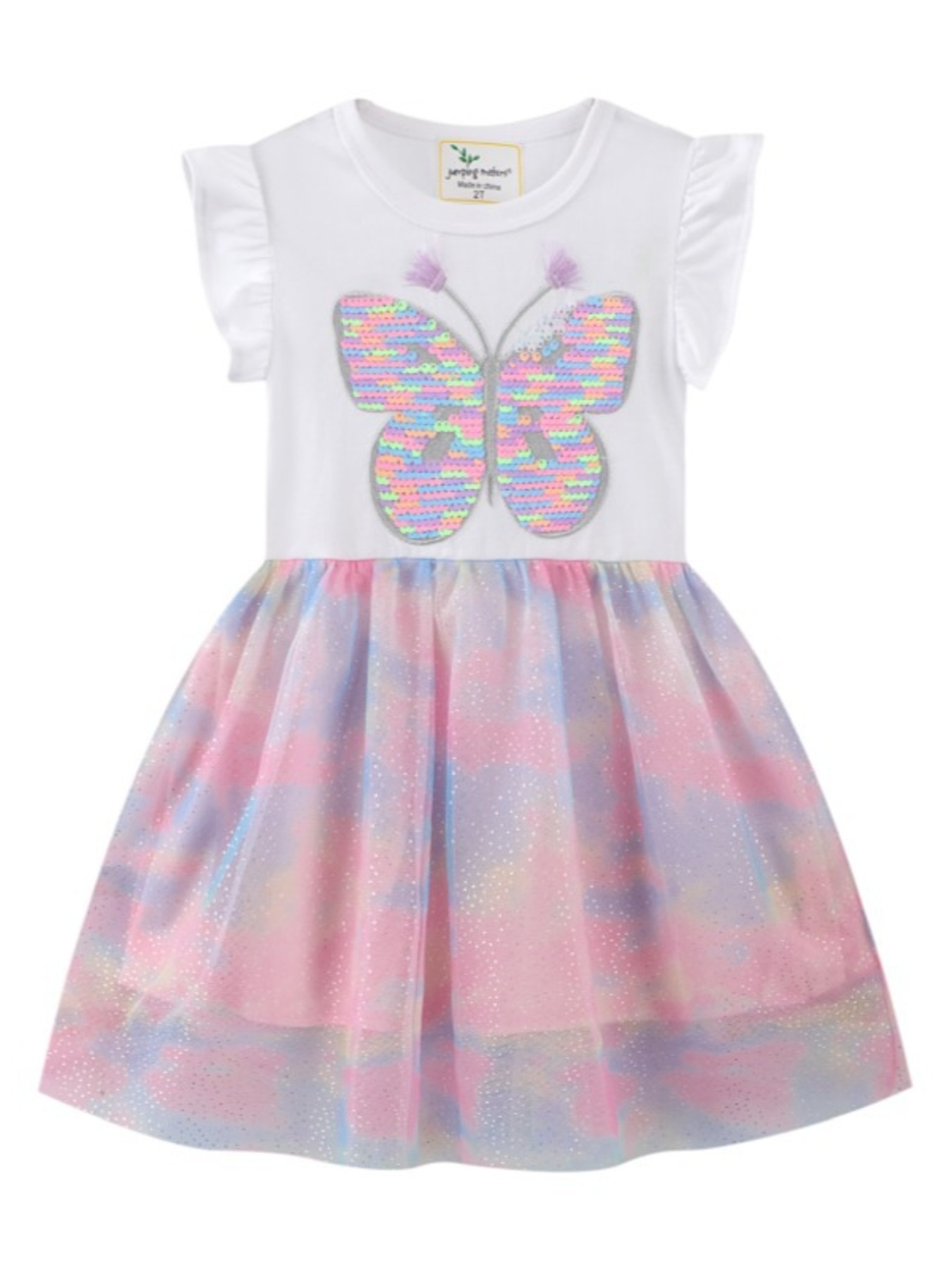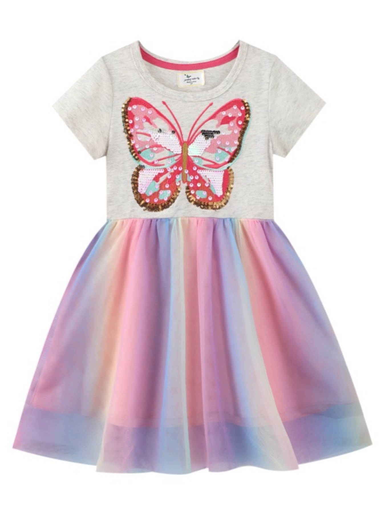 Children's Butterfly Sequin Rainbow Tulle Dress