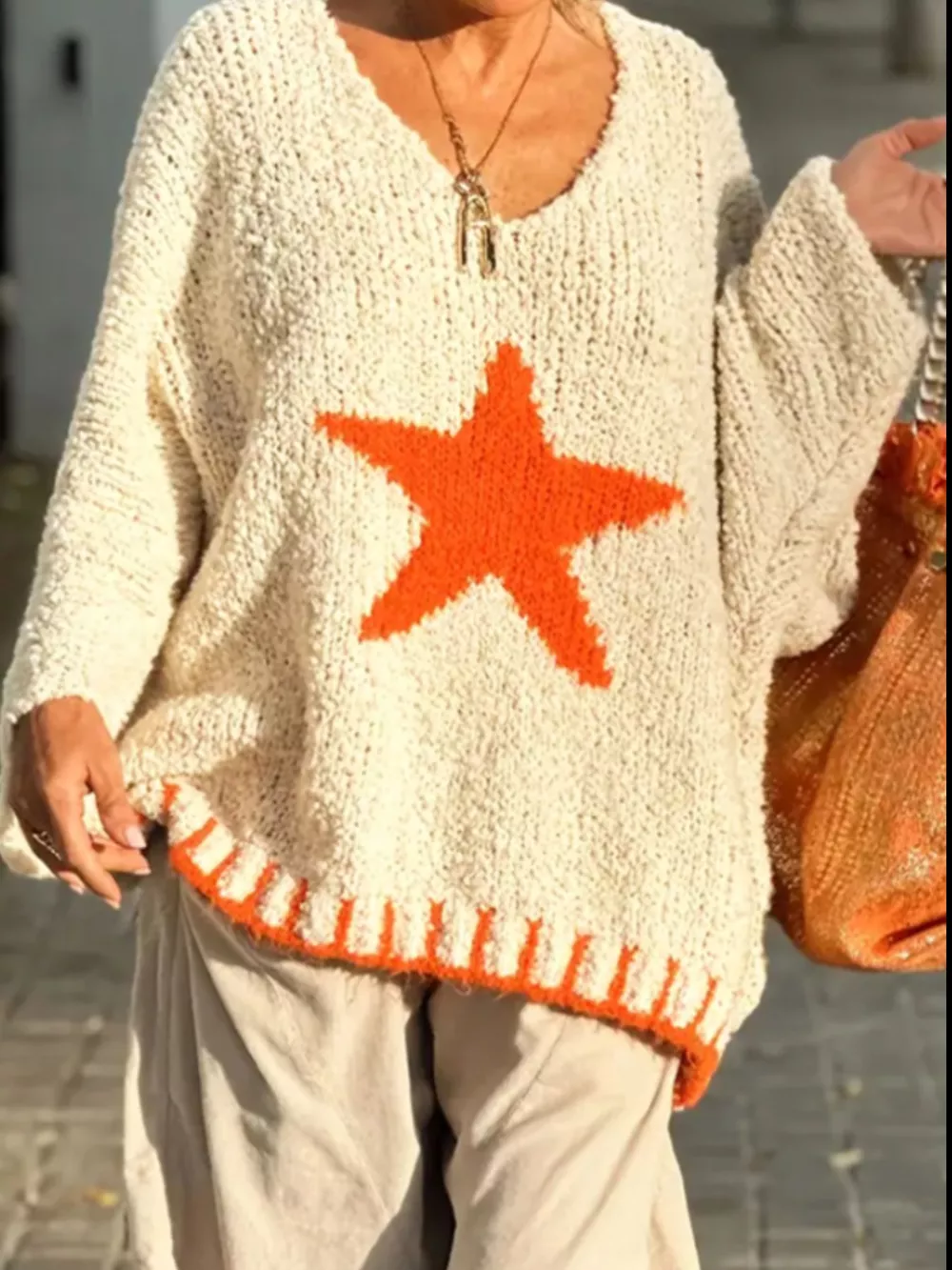 Oversized Star Pattern Ribbed Edge Drop Shoulder Sweater