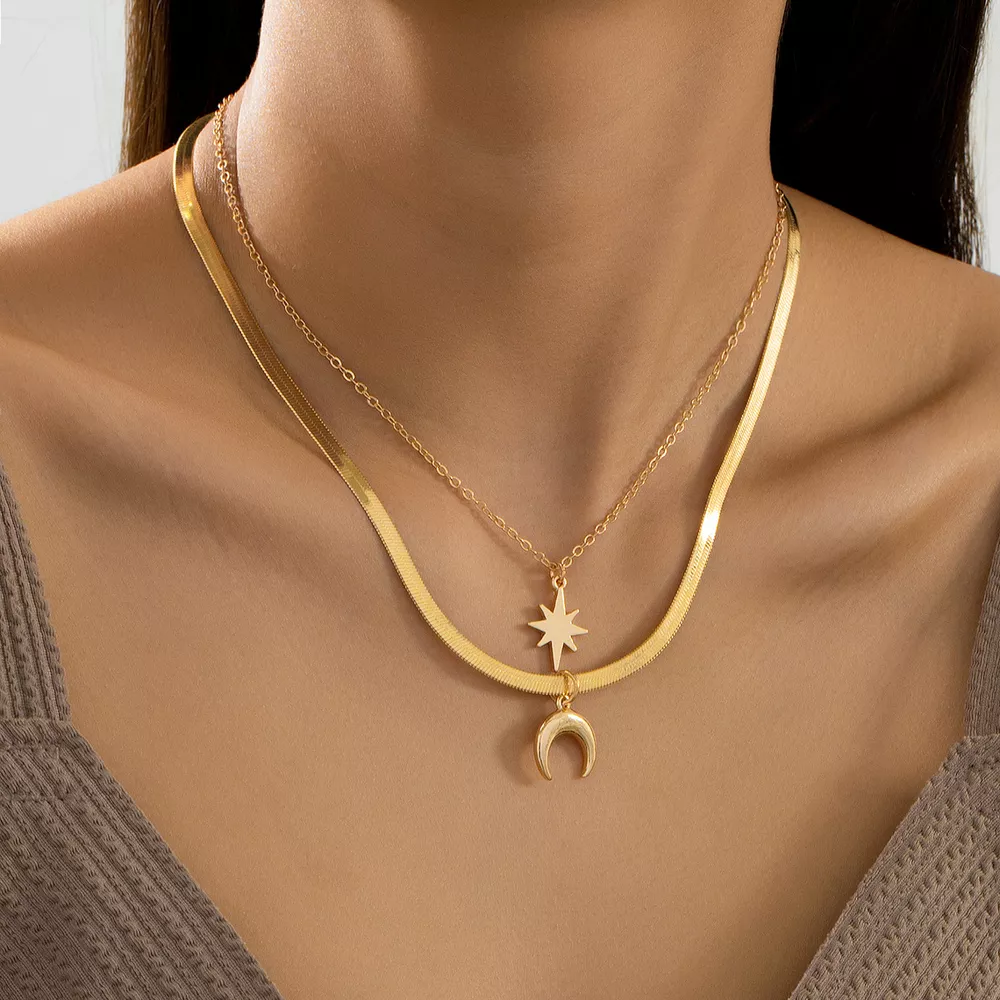 18K Gold-Plated Moon and Star Gold Chain Necklace