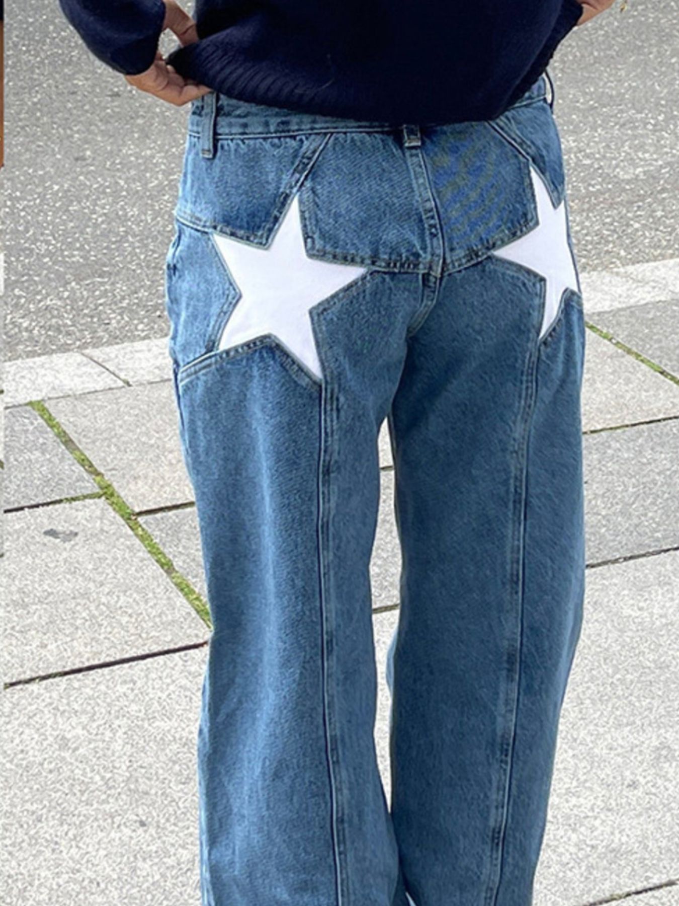 Mid Rise Ankle Length Relaxed Barrel Star Printed Jeans