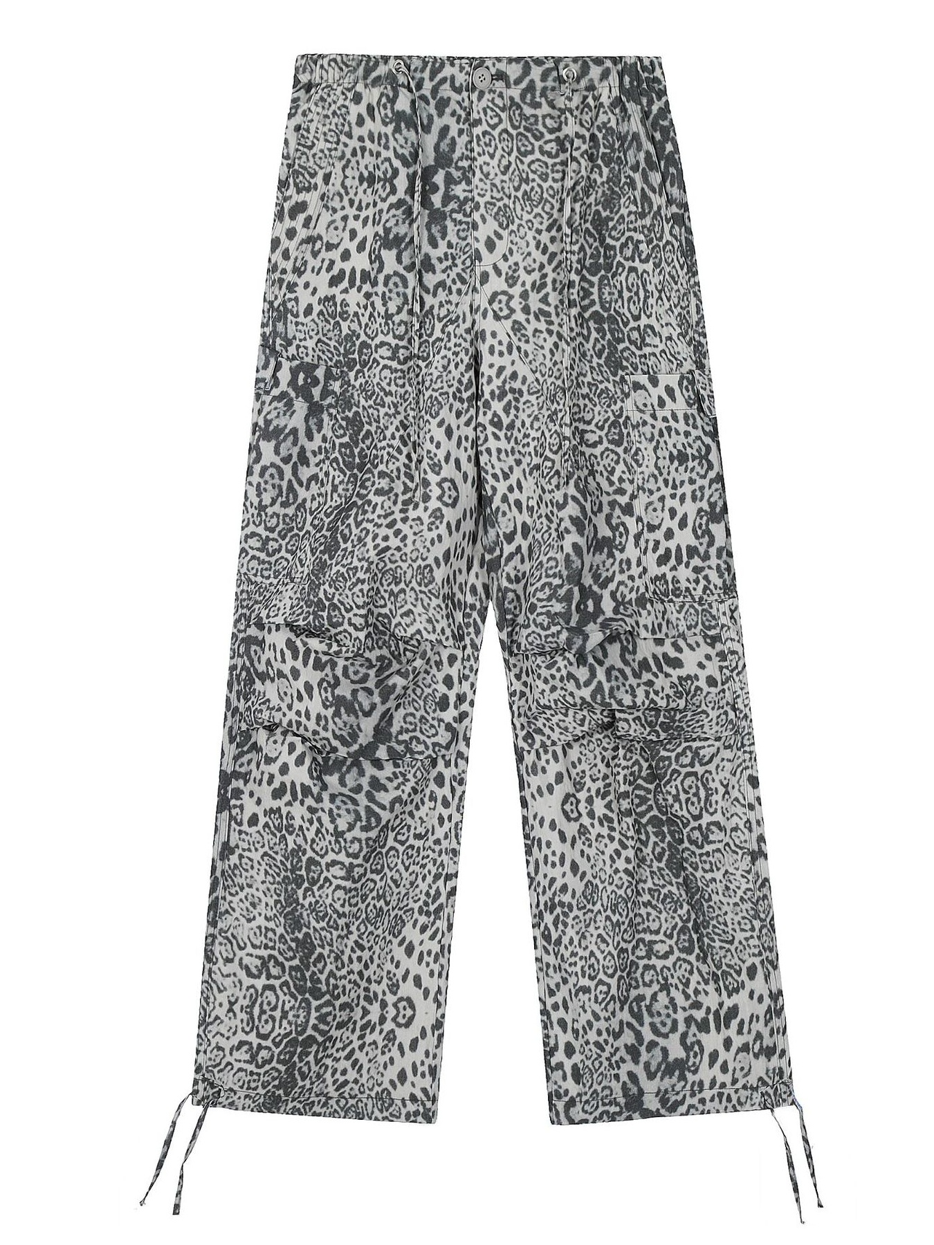 Men's Leopard Wide Leg Pants with Drawstring Details