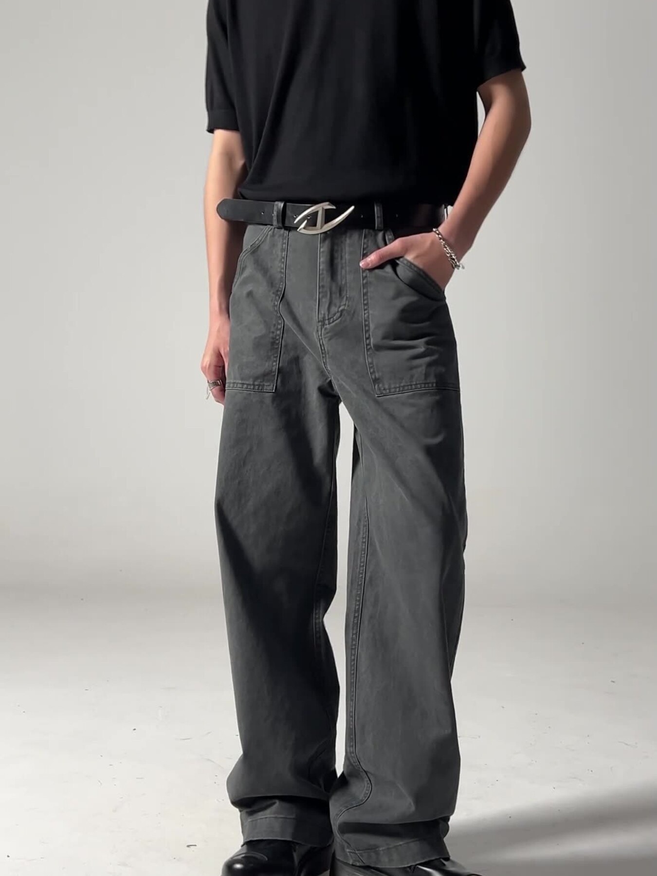 Men's Washed Wide Leg Pants