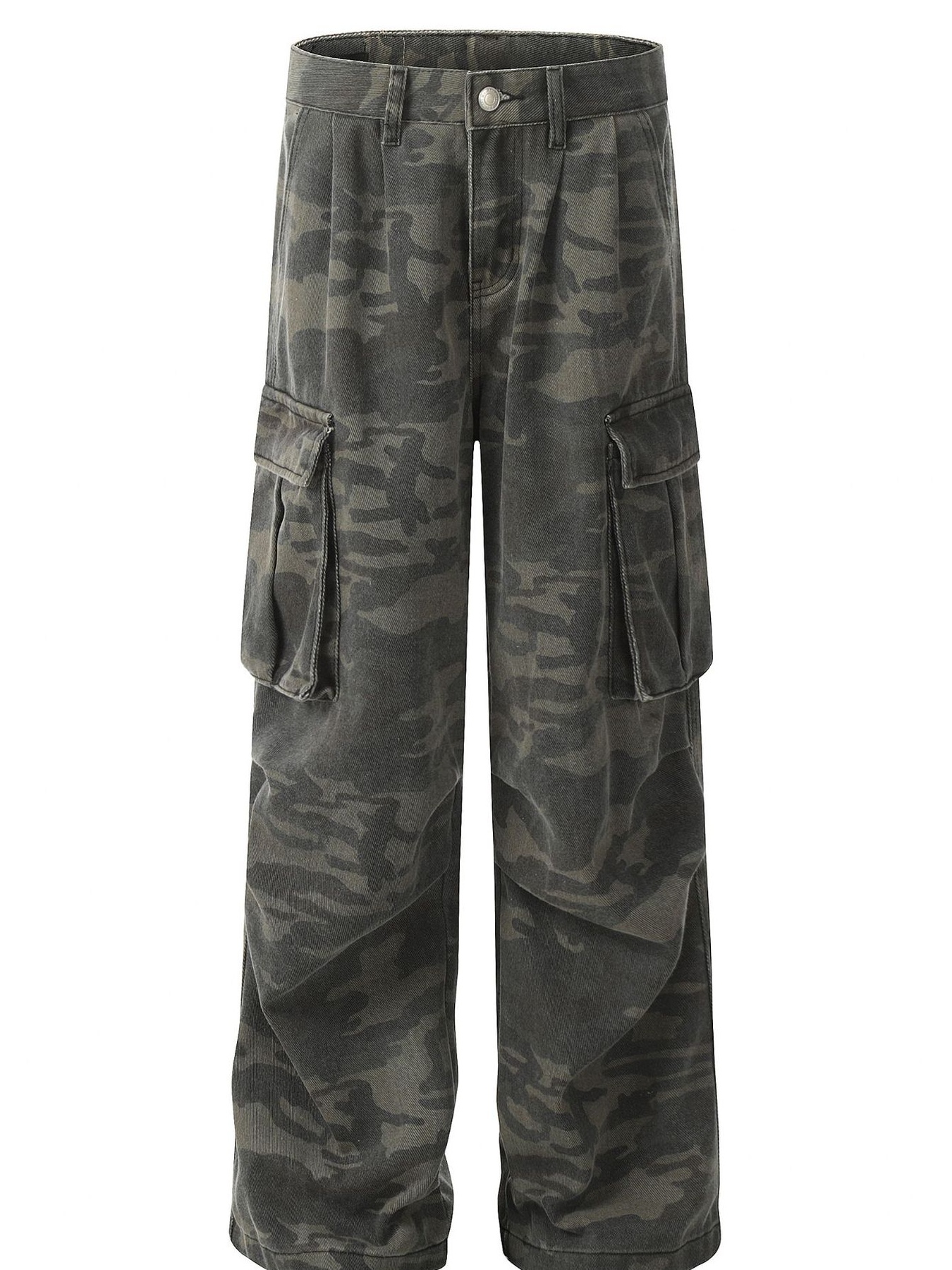 Men's Distressed Camouflage Cargo Pants with Multiple Pockets