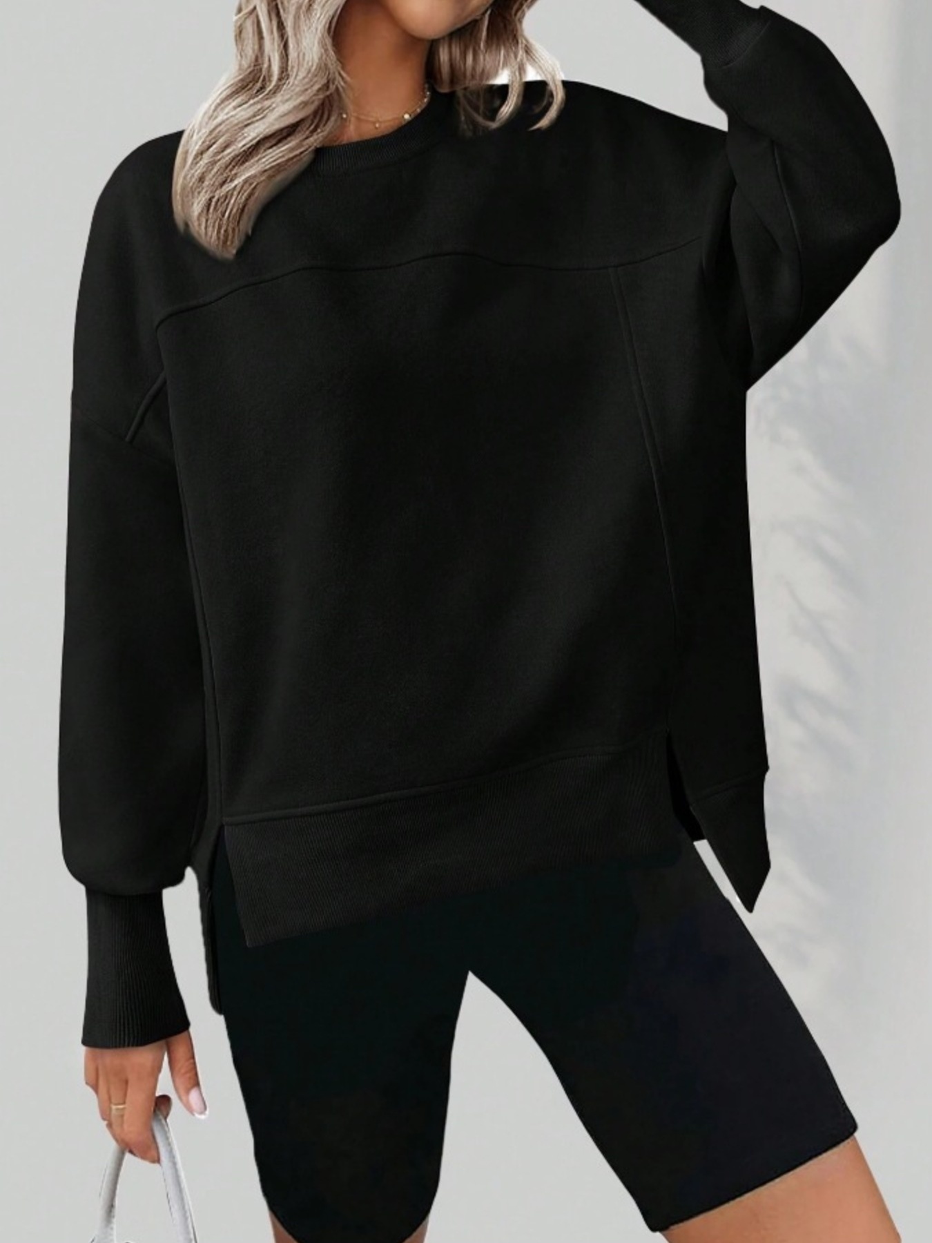 Slit Round Neck Dropped Shoulder Sweatshirt