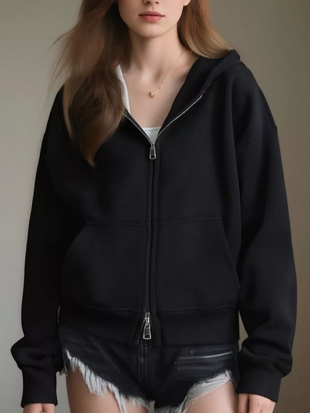 Full Size Casual Zip-Up Long Sleeve Hoodie Plus Size